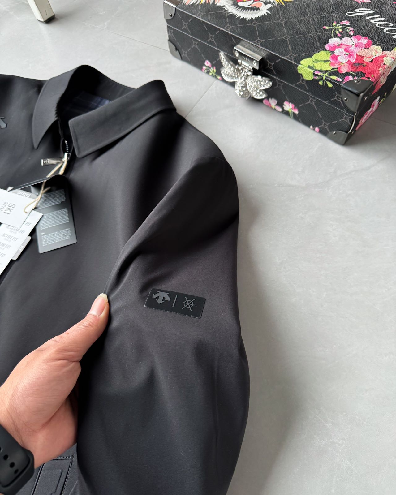 这款衣服是AAAAA 1:1 质量 (非常棒). 使用了和原版一模一样的材料. 商标部分也保持了和Descente一样. 图片拍摄是实物衣服拍摄, 您所收到的实物保证和我们图片一模一样.