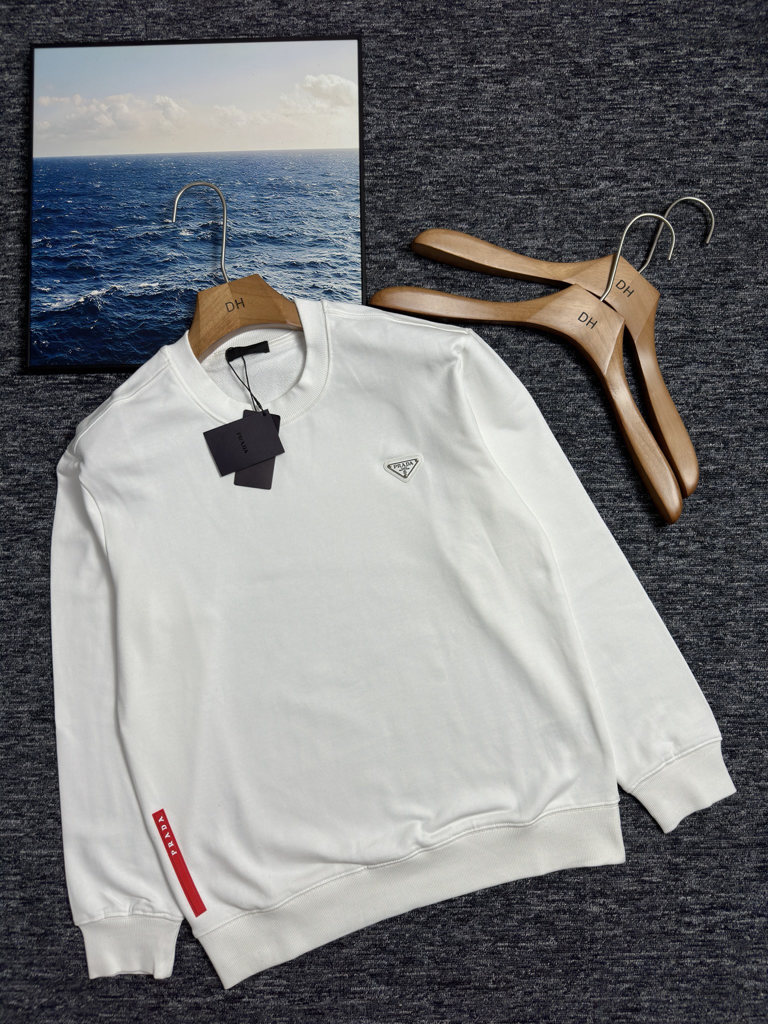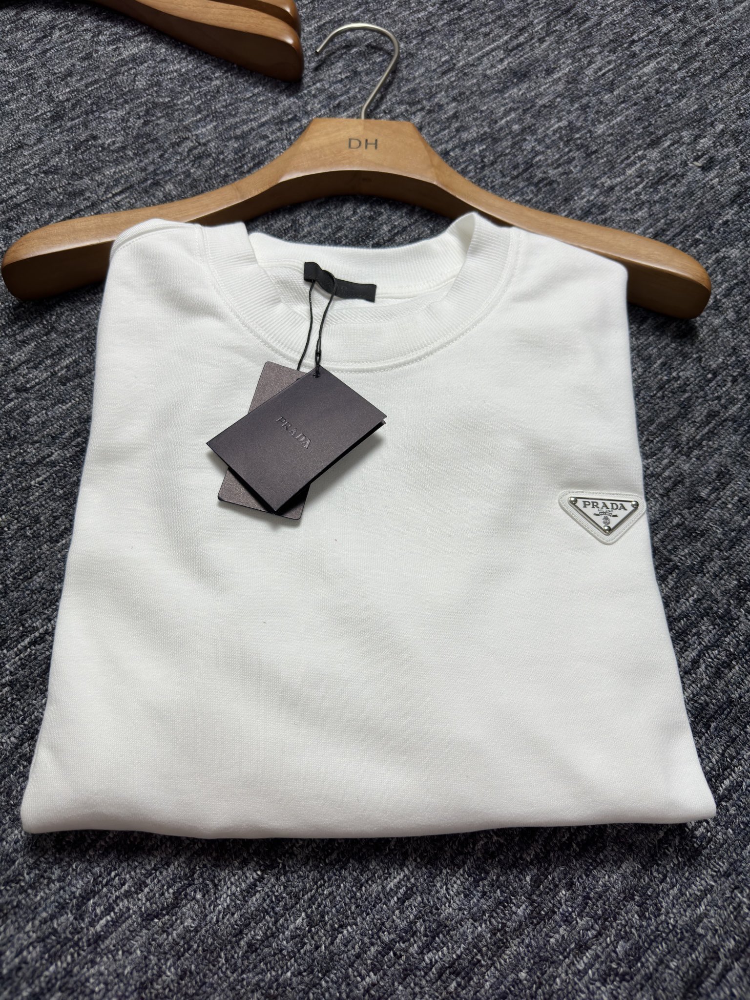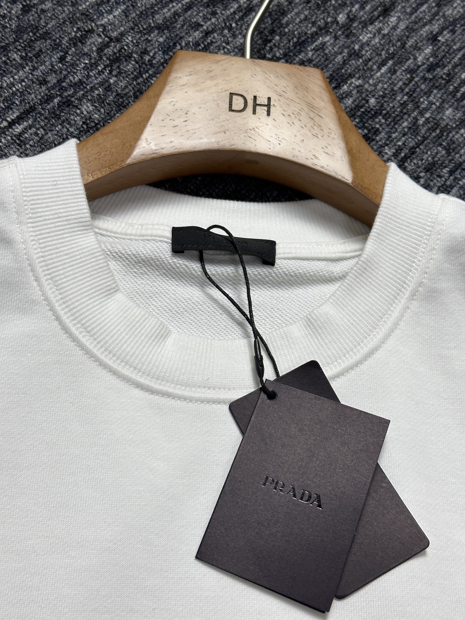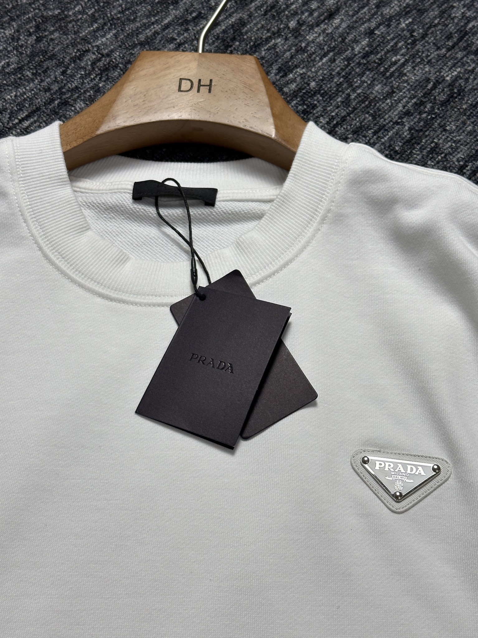 这款衣服是AAAAA 1:1 质量 (非常棒). 使用了和原版一模一样的材料. 商标部分也保持了和普拉达/Prada一样. 图片拍摄是实物衣服拍摄, 您所收到的实物保证和我们图片一模一样.