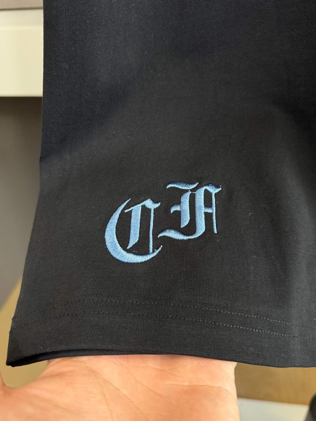 这款衣服是AAAAA 1:1 质量 (非常棒). 使用了和原版一模一样的材料. 商标部分也保持了和克罗心/Chrome Hearts一样. 图片拍摄是实物衣服拍摄, 您所收到的实物保证和我们图片一模一样.
