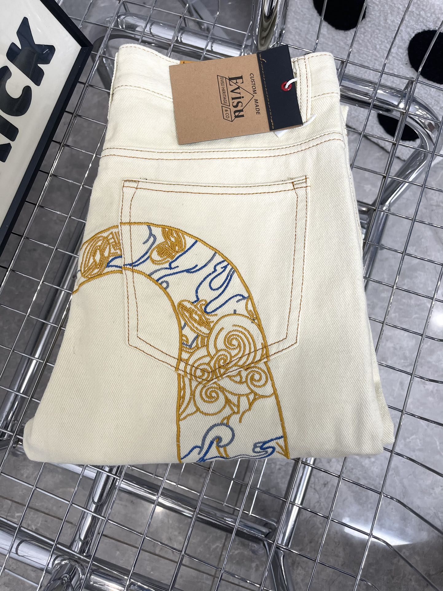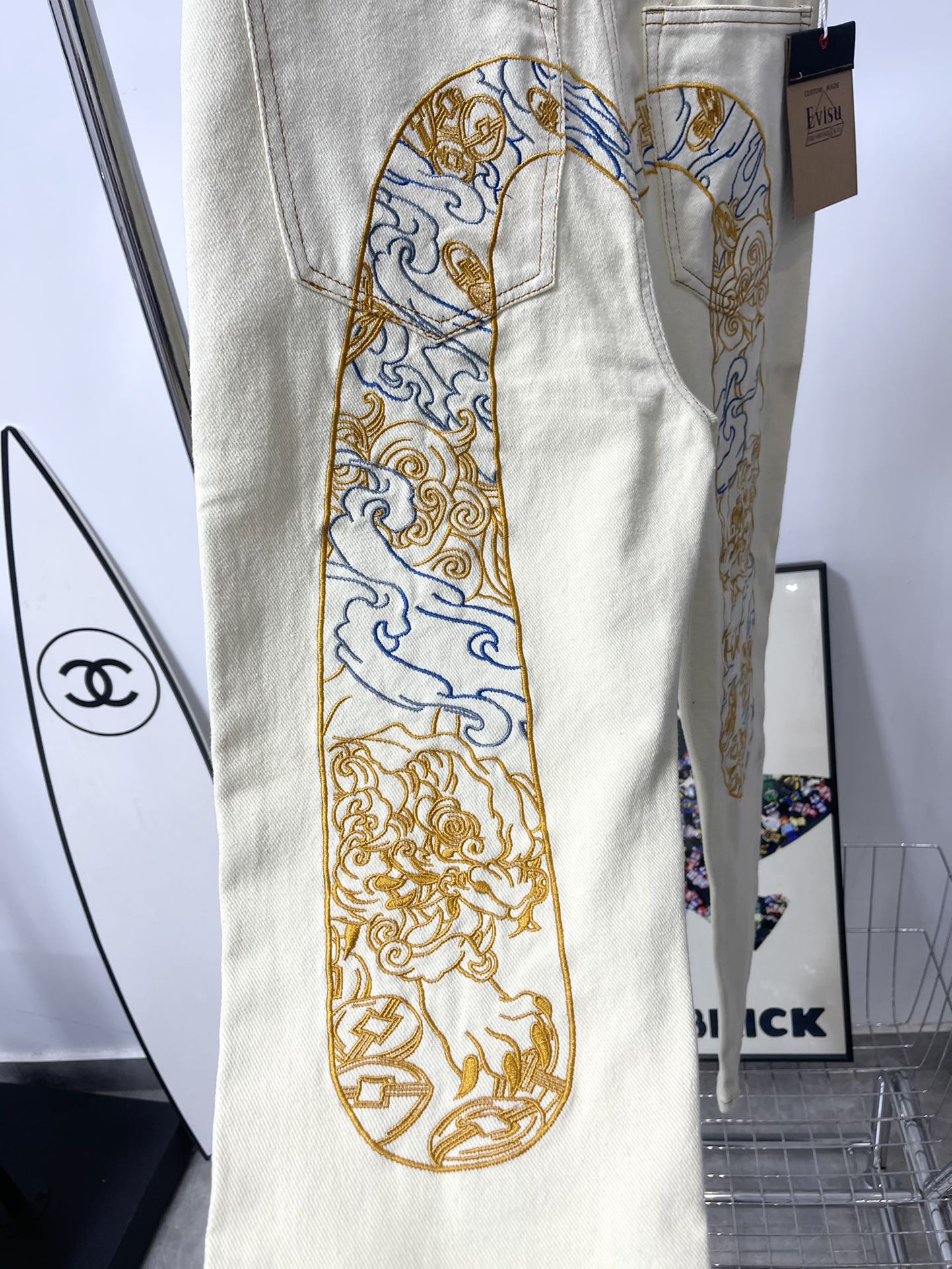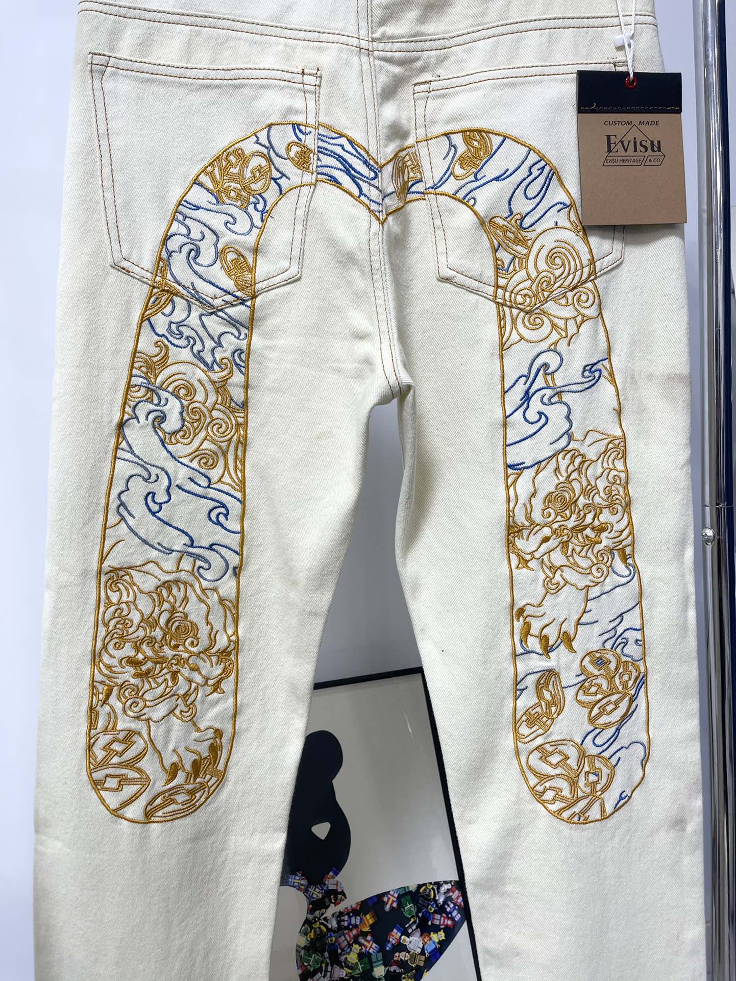 这款衣服是AAAAA 1:1 质量 (非常棒). 使用了和原版一模一样的材料. 商标部分也保持了和EVISU一样. 图片拍摄是实物衣服拍摄, 您所收到的实物保证和我们图片一模一样.