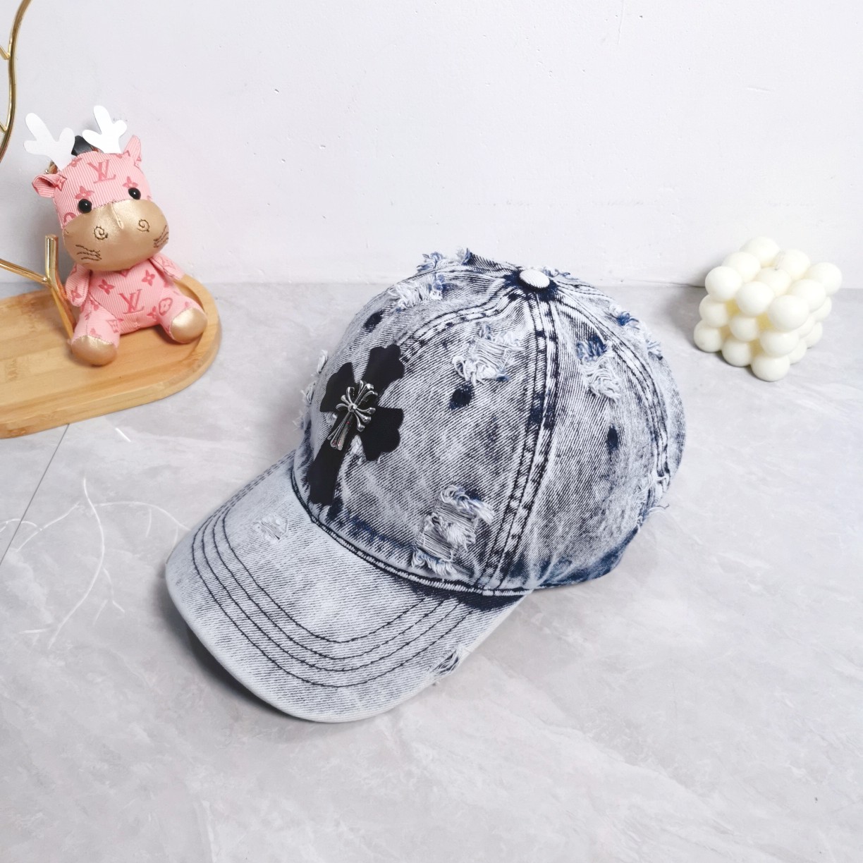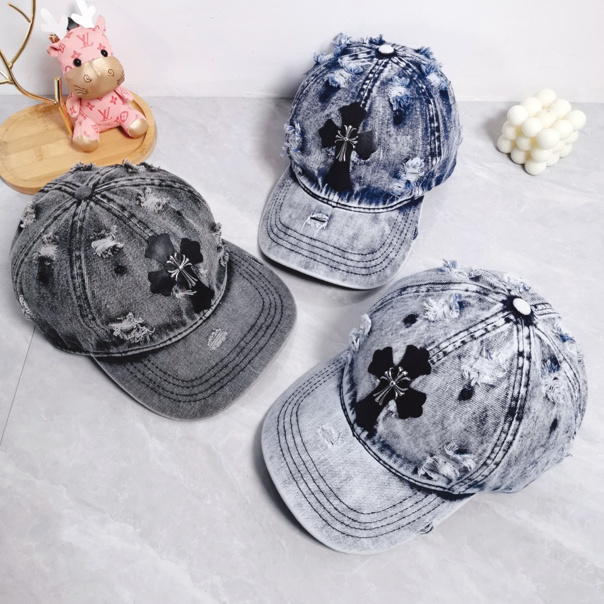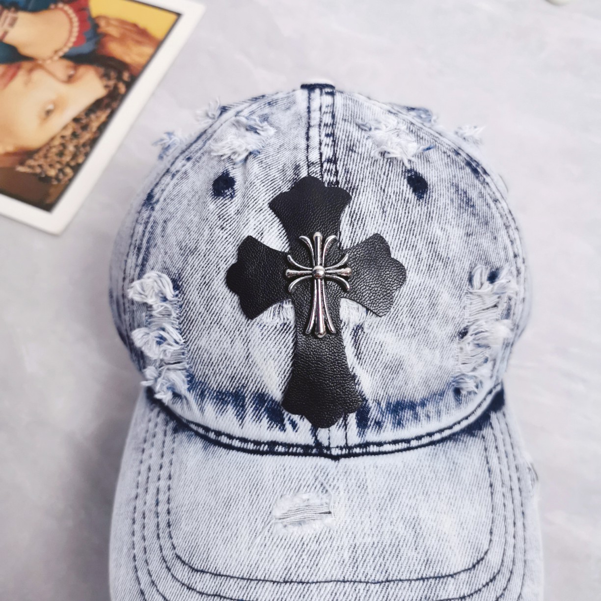 这款帽子是AAAAA 1:1 质量 (非常棒). 使用了和原版一模一样的材料. 商标部分也保持了和克罗心/Chrome Hearts一样. 图片拍摄是实物帽子拍摄, 您所收到的实物保证和我们图片一模一样.