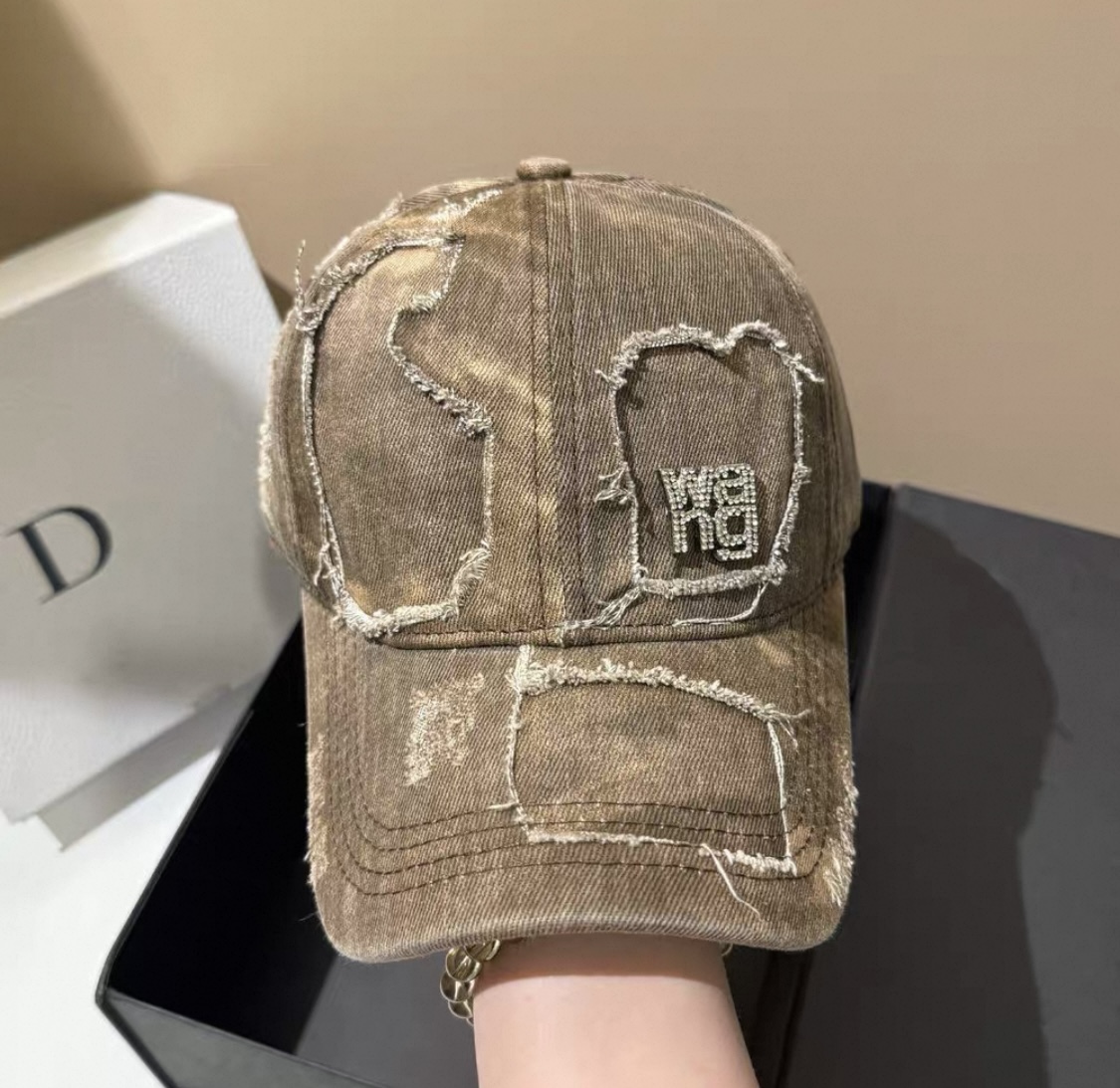 这款帽子是AAAAA 1:1 质量 (非常棒). 使用了和原版一模一样的材料. 商标部分也保持了和亚历山大王/Alexander Wang一样. 图片拍摄是实物帽子拍摄, 您所收到的实物保证和我们图片一模一样.