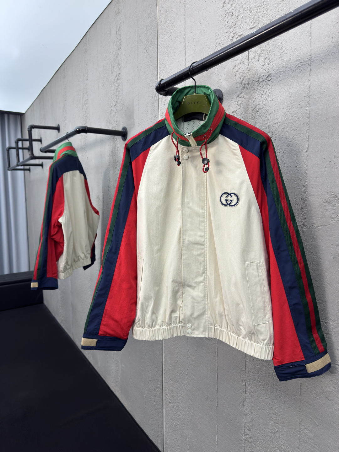 这款衣服是AAAAA 1:1 质量 (非常棒). 使用了和原版一模一样的材料. 商标部分也保持了和古奇/Gucci一样. 图片拍摄是实物衣服拍摄, 您所收到的实物保证和我们图片一模一样.