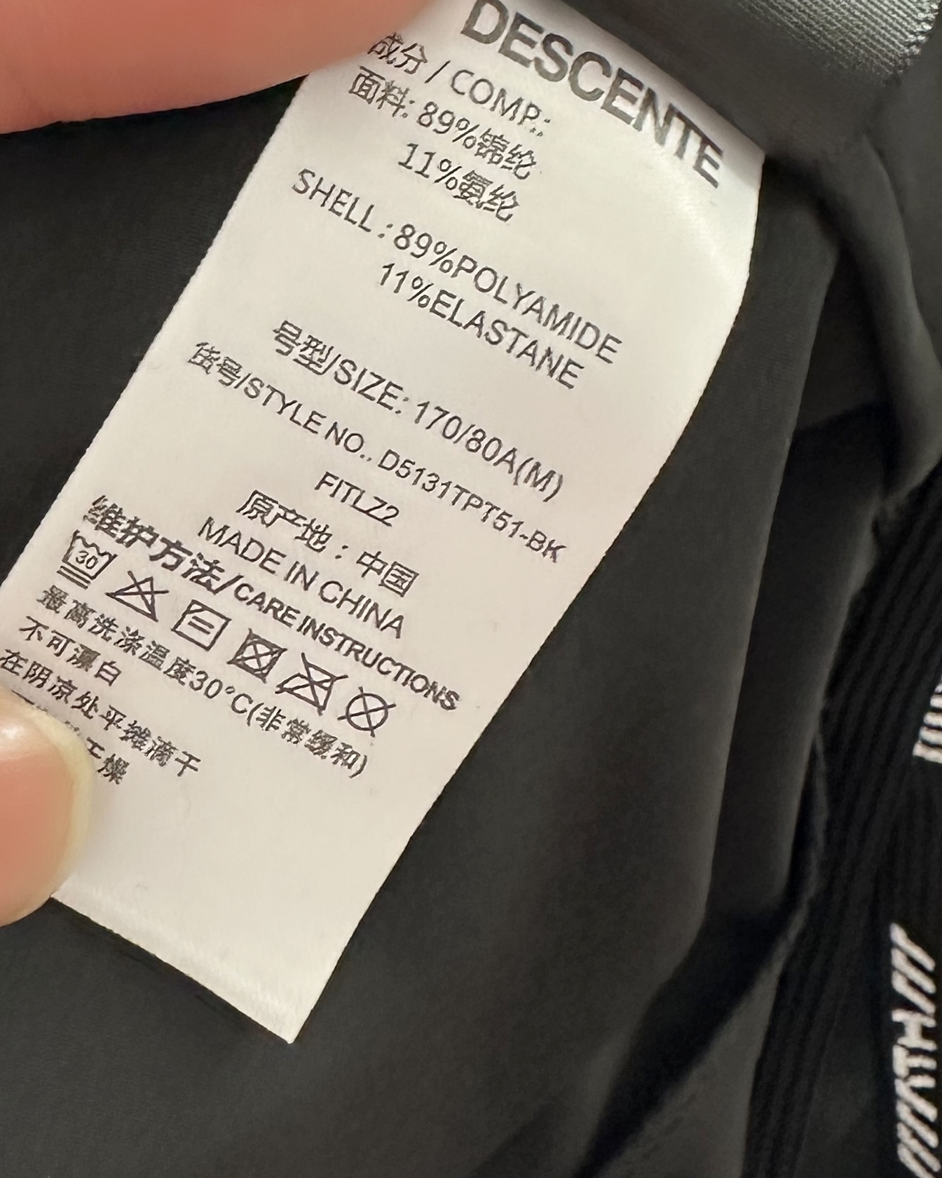 这款衣服是AAAAA 1:1 质量 (非常棒). 使用了和原版一模一样的材料. 商标部分也保持了和Descente一样. 图片拍摄是实物衣服拍摄, 您所收到的实物保证和我们图片一模一样.