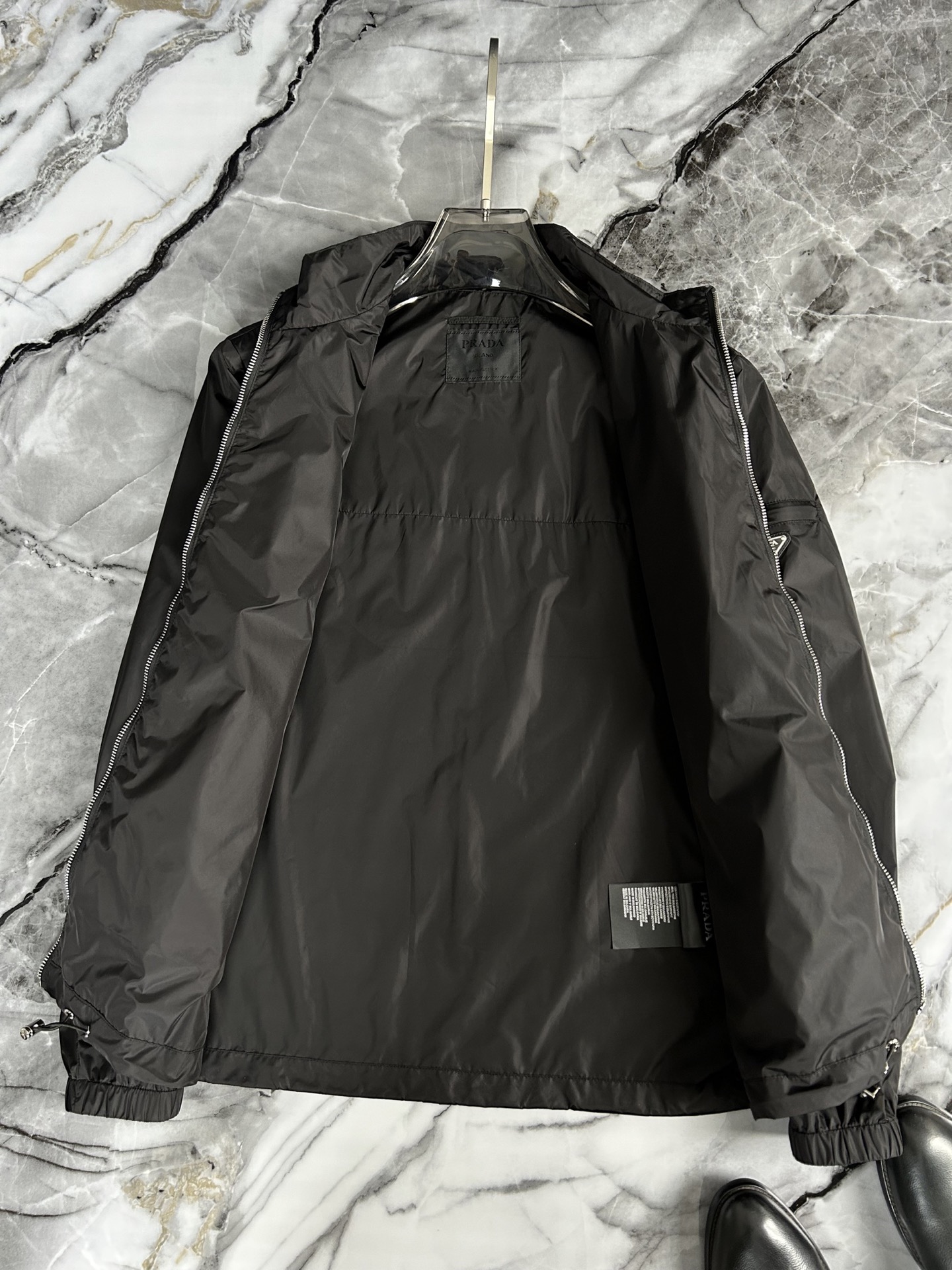 这款衣服是AAAAA 1:1 质量 (非常棒). 使用了和原版一模一样的材料. 商标部分也保持了和普拉达/Prada一样. 图片拍摄是实物衣服拍摄, 您所收到的实物保证和我们图片一模一样.