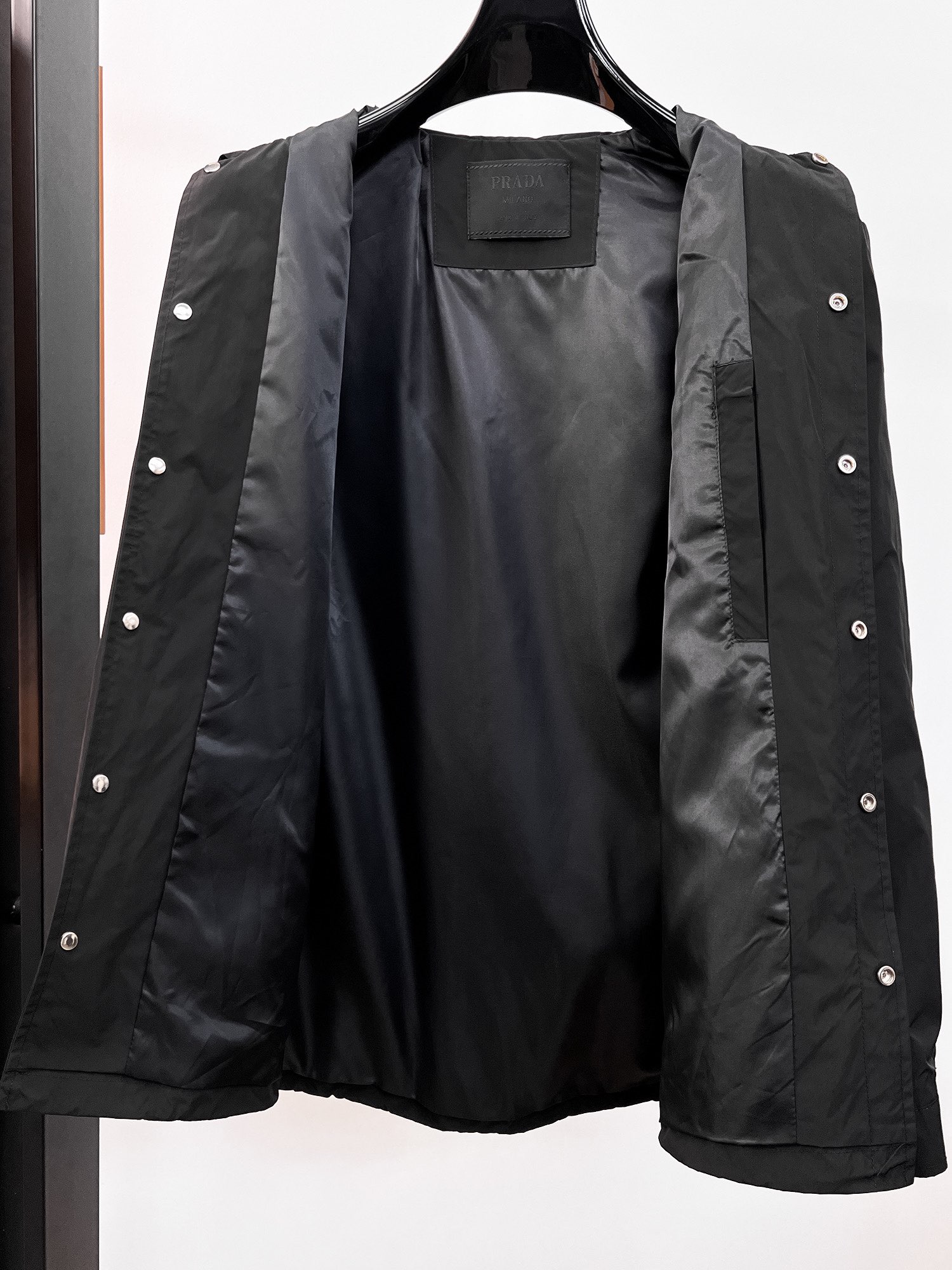 这款衣服是AAAAA 1:1 质量 (非常棒). 使用了和原版一模一样的材料. 商标部分也保持了和普拉达/Prada一样. 图片拍摄是实物衣服拍摄, 您所收到的实物保证和我们图片一模一样.