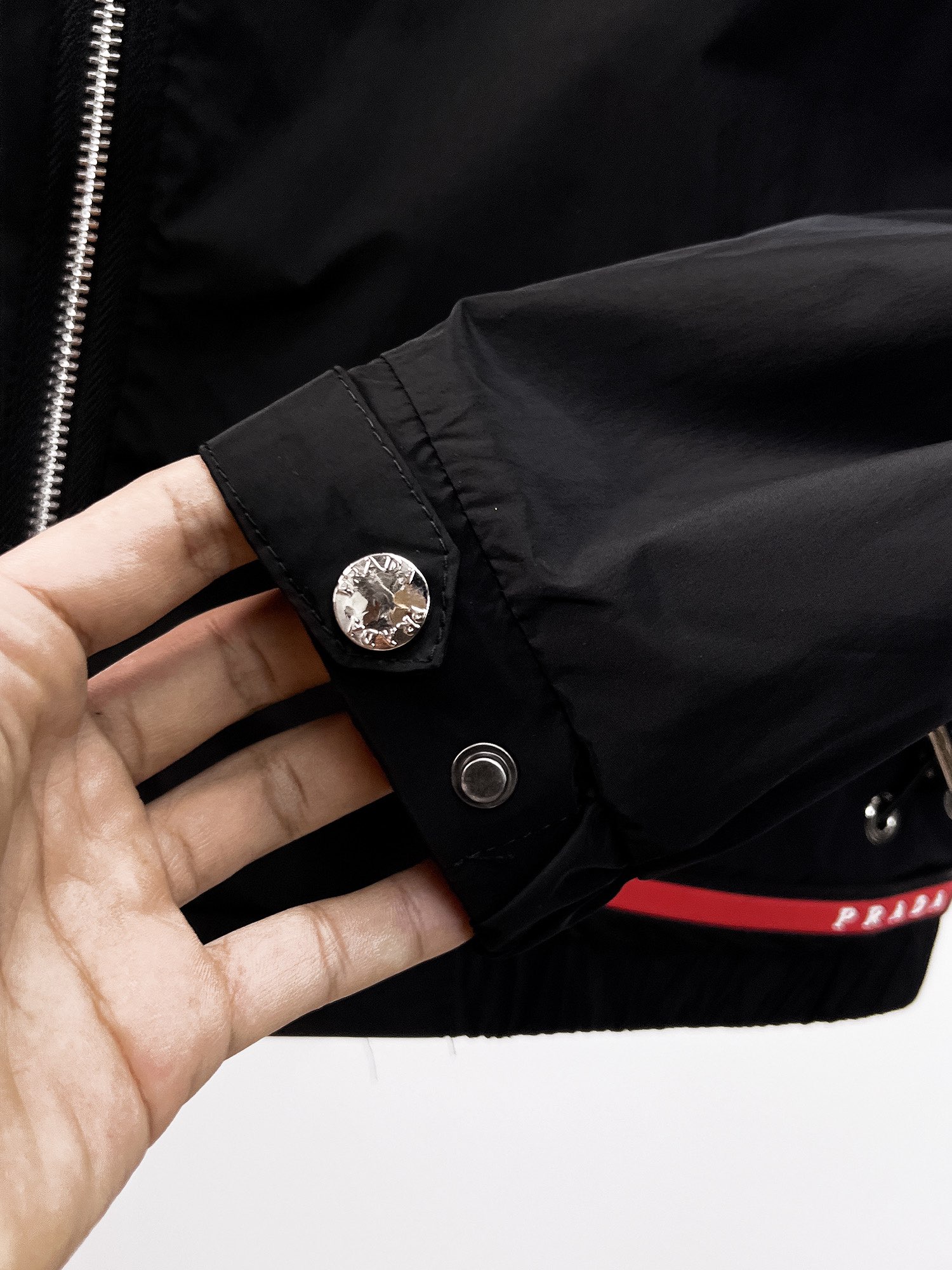 这款衣服是AAAAA 1:1 质量 (非常棒). 使用了和原版一模一样的材料. 商标部分也保持了和普拉达/Prada一样. 图片拍摄是实物衣服拍摄, 您所收到的实物保证和我们图片一模一样.