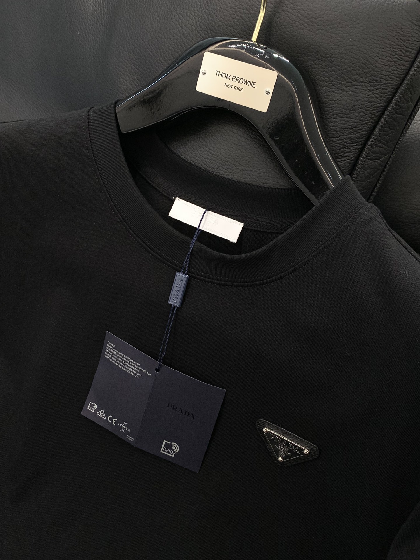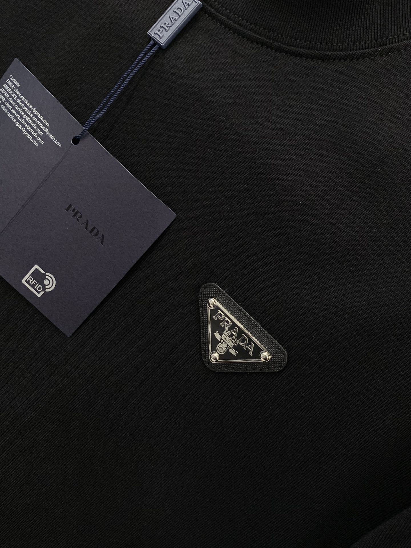 这款衣服是AAAAA 1:1 质量 (非常棒). 使用了和原版一模一样的材料. 商标部分也保持了和普拉达/Prada一样. 图片拍摄是实物衣服拍摄, 您所收到的实物保证和我们图片一模一样.