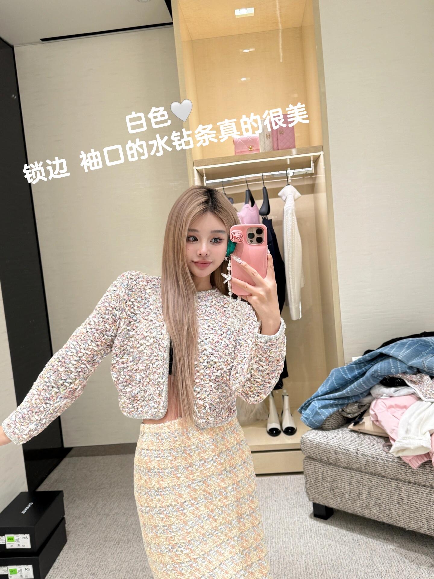 这款衣服是AAAAA 1:1 质量 (非常棒). 使用了和原版一模一样的材料. 商标部分也保持了和香奈儿/Chanel一样. 图片拍摄是实物衣服拍摄, 您所收到的实物保证和我们图片一模一样.