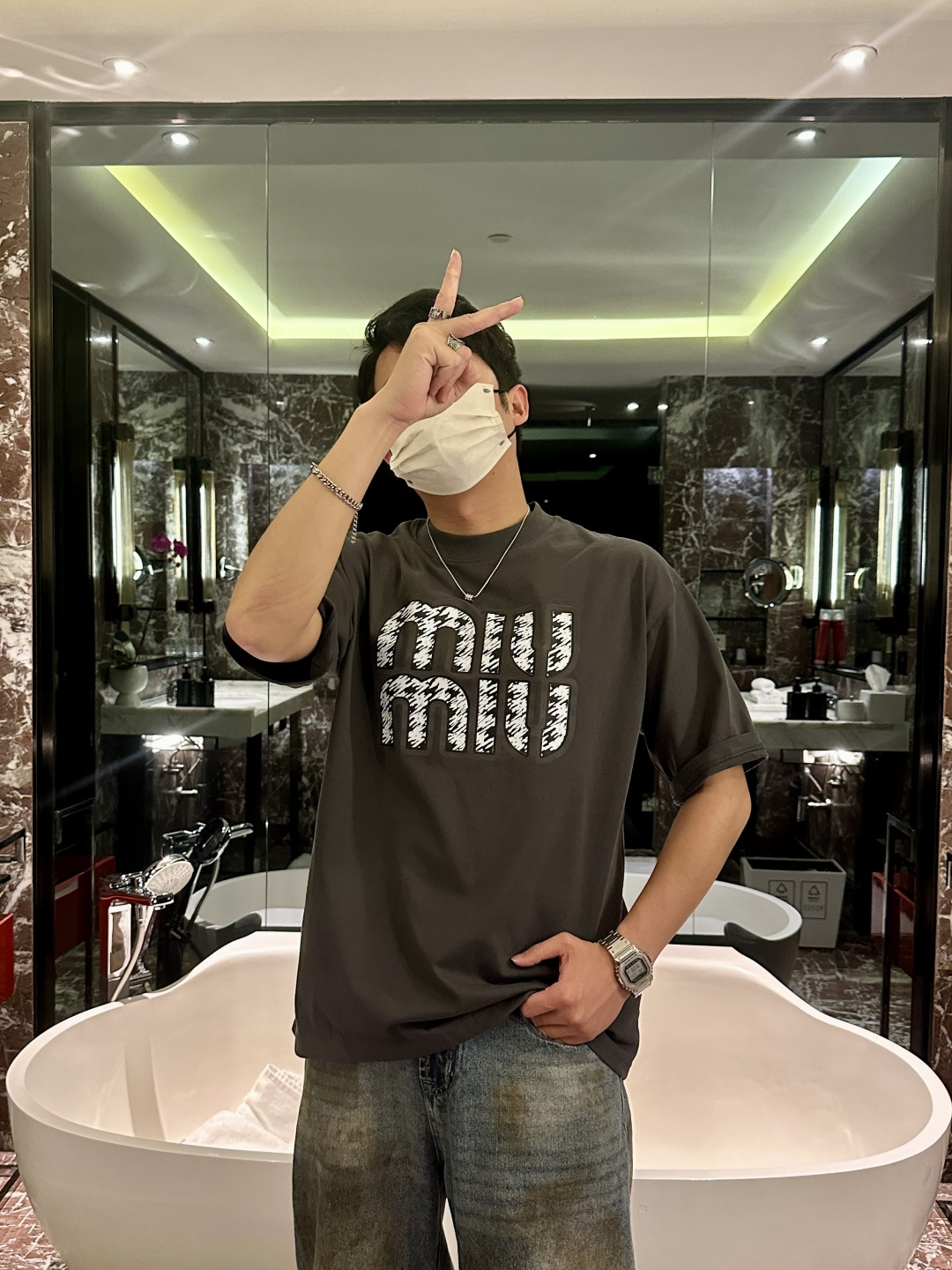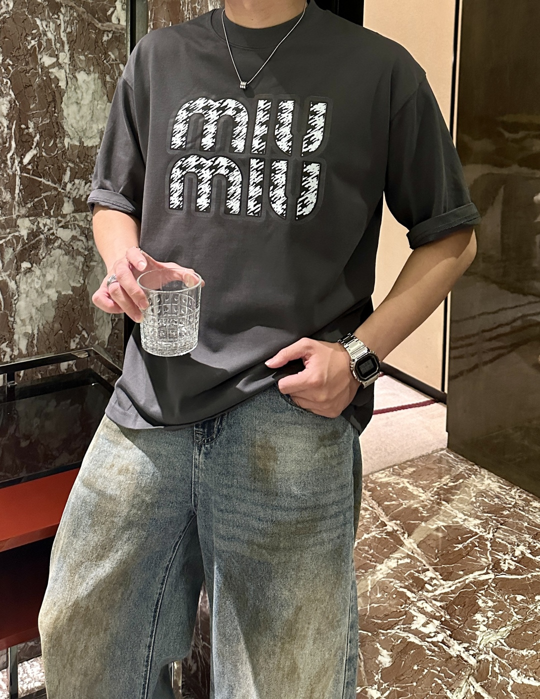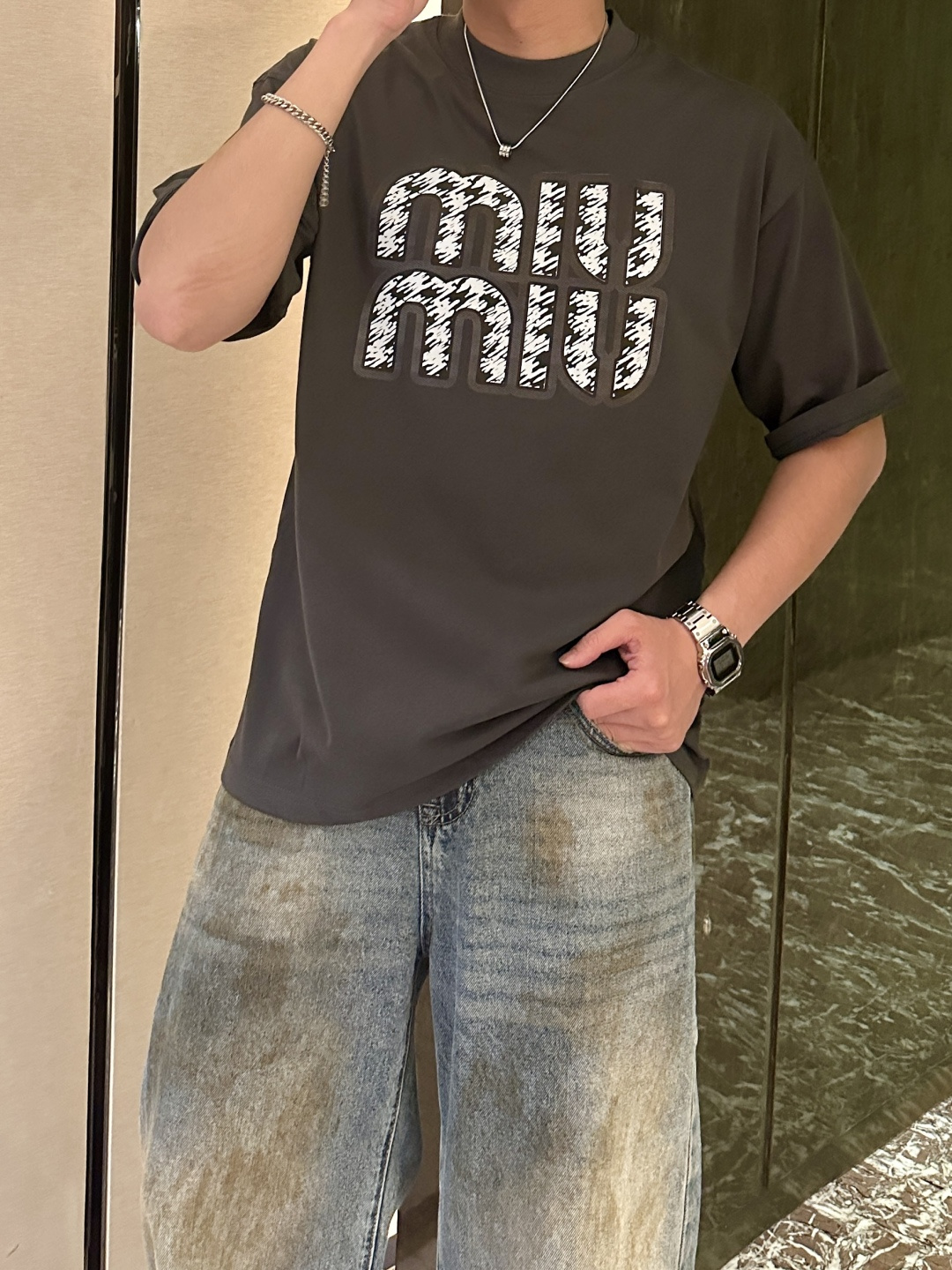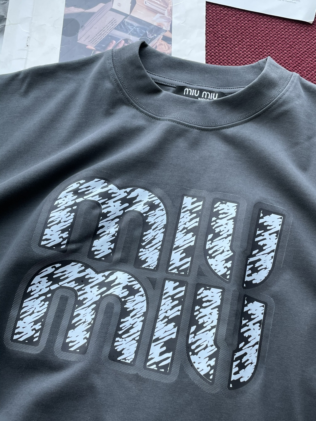 这款衣服是AAAAA 1:1 质量 (非常棒). 使用了和原版一模一样的材料. 商标部分也保持了和缪缪/Miu Miu一样. 图片拍摄是实物衣服拍摄, 您所收到的实物保证和我们图片一模一样.