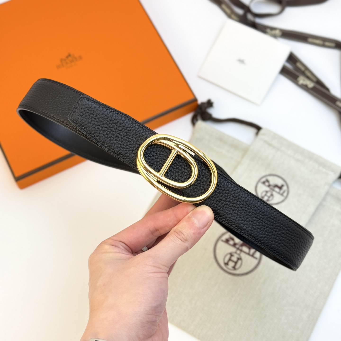 这款皮带是AAAAA 1:1 质量 (非常棒). 使用了和原版一模一样的材料. 商标部分也保持了和爱马仕/Hermes一样. 图片拍摄是实物皮带拍摄, 您所收到的实物保证和我们图片一模一样.