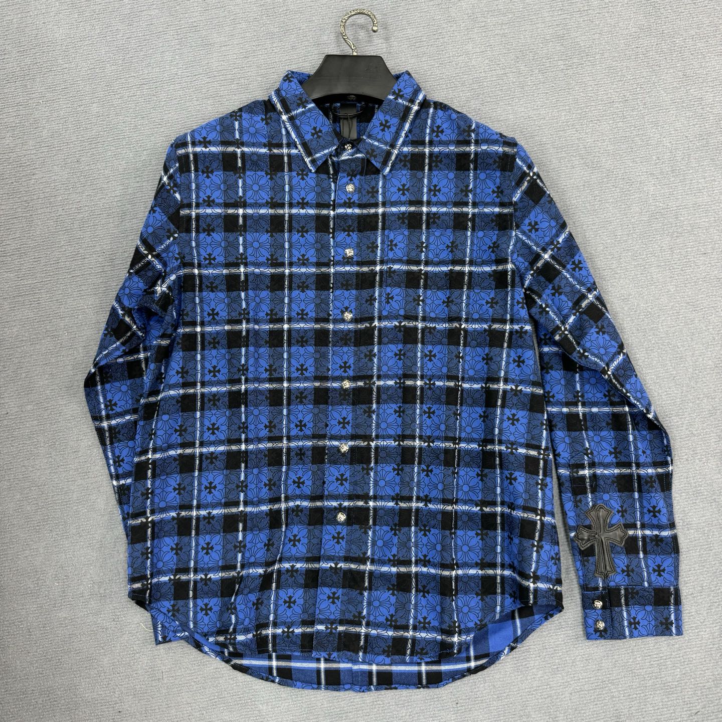 这款衣服是AAAAA 1:1 质量 (非常棒). 使用了和原版一模一样的材料. 商标部分也保持了和克罗心/Chrome Hearts一样. 图片拍摄是实物衣服拍摄, 您所收到的实物保证和我们图片一模一样.