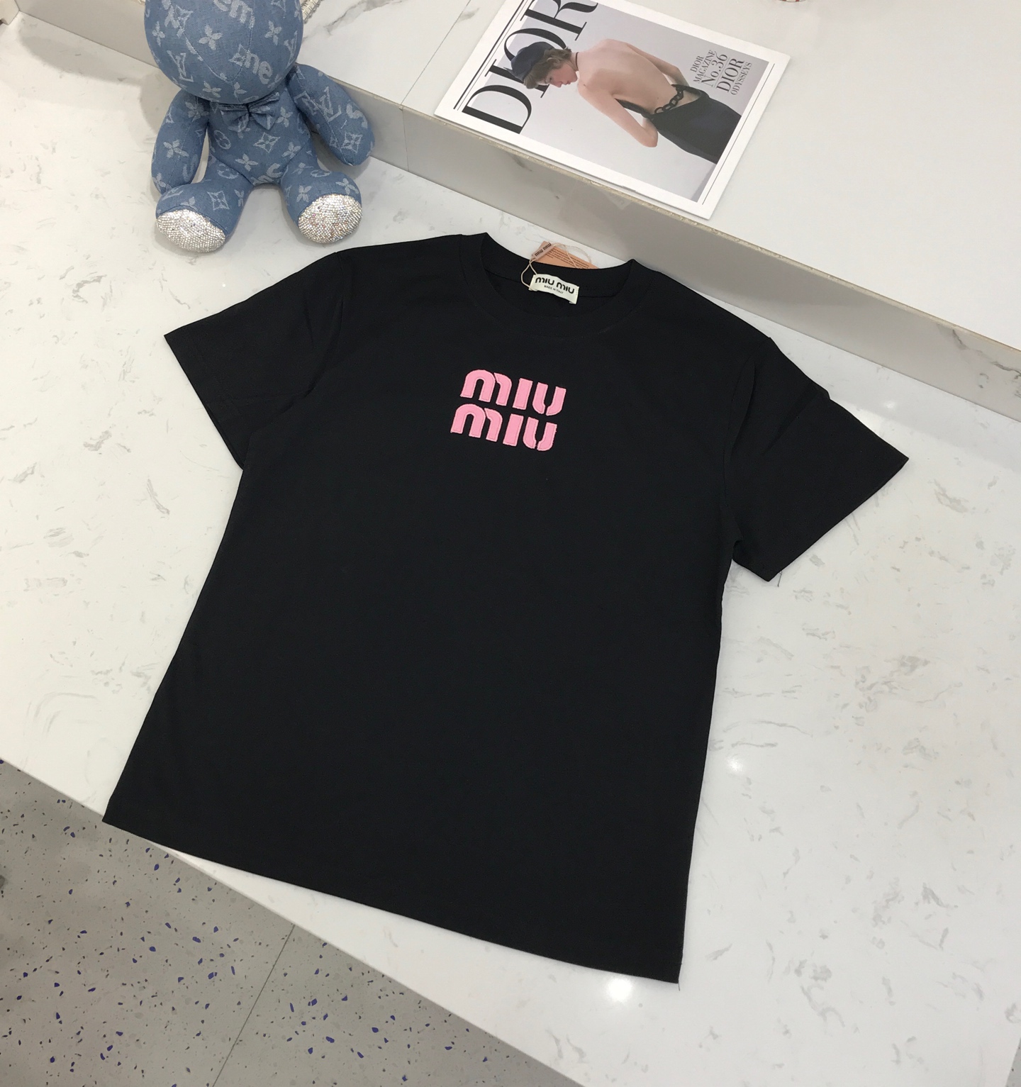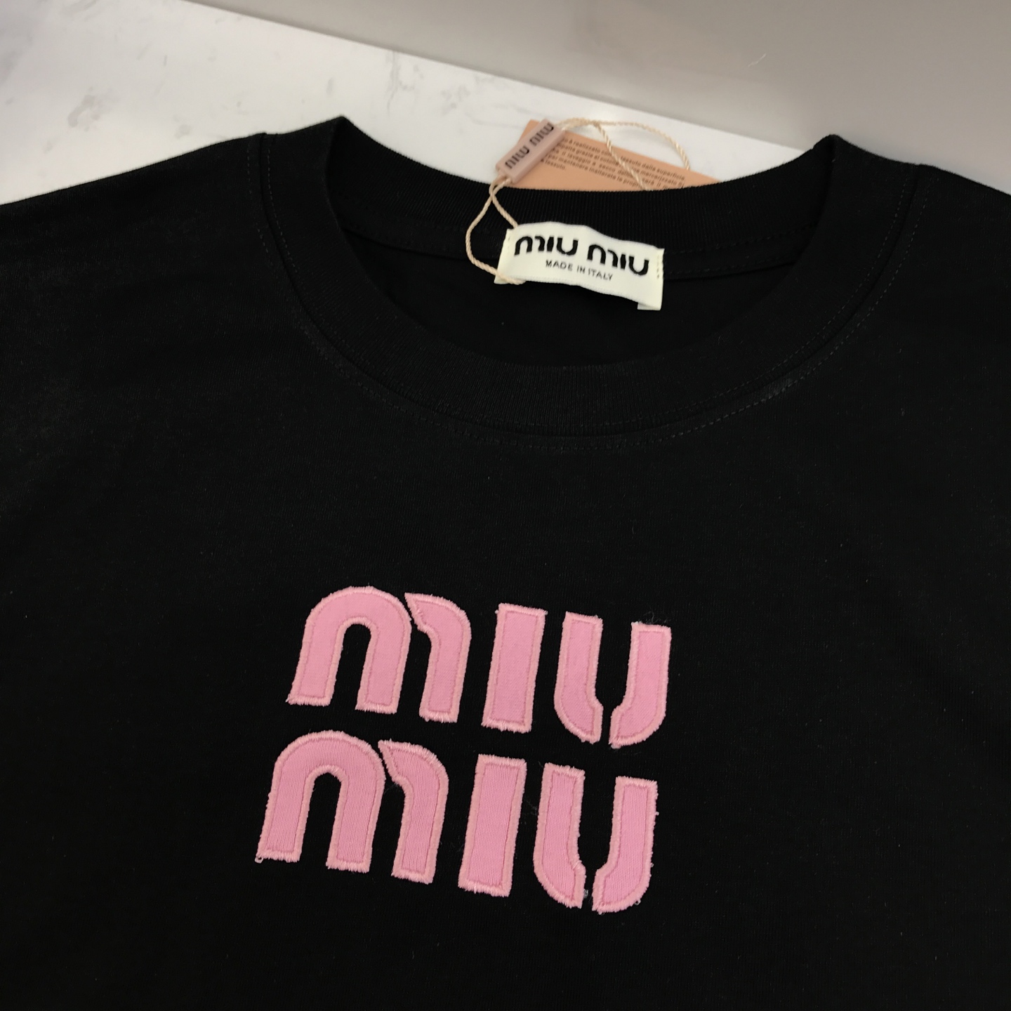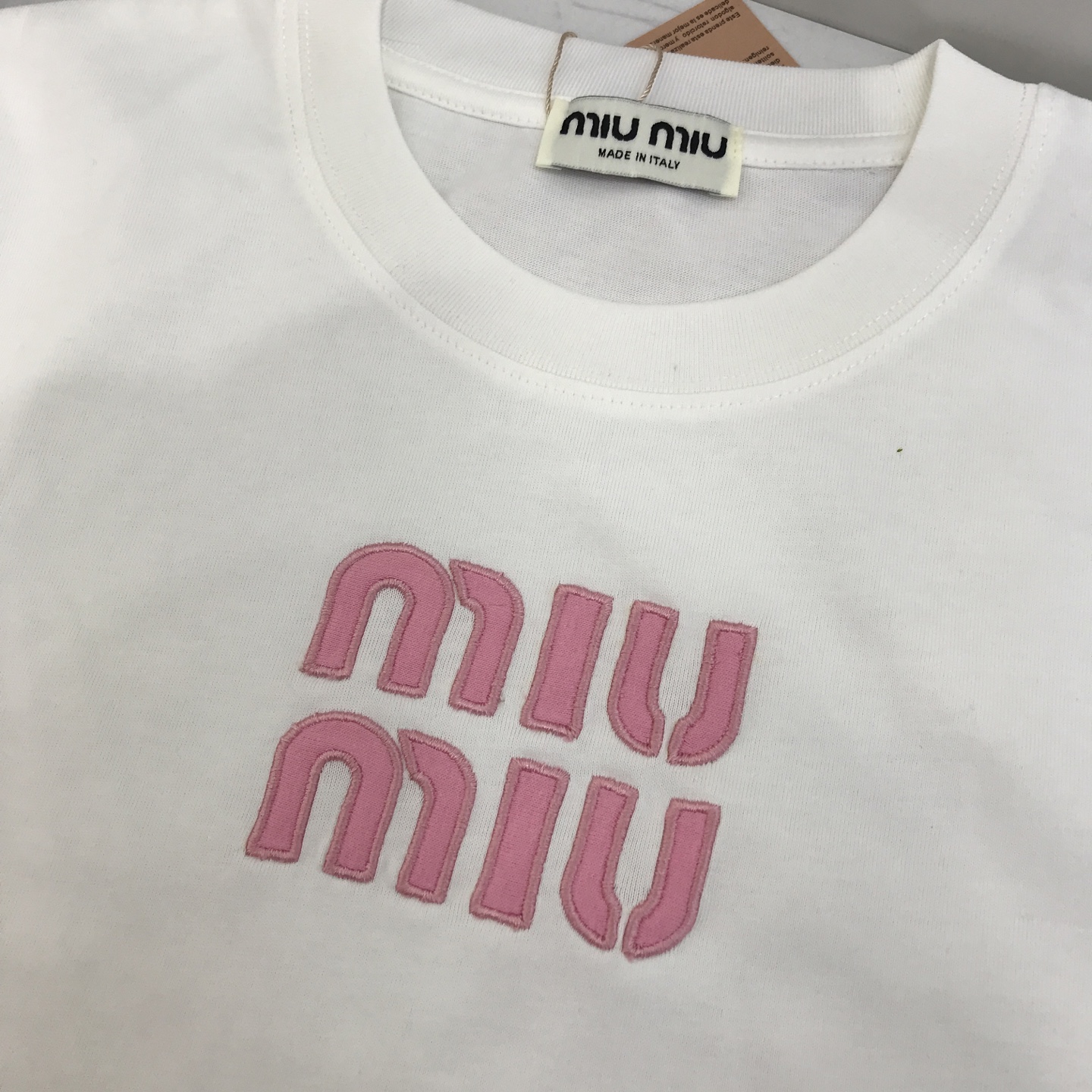 这款衣服是AAAAA 1:1 质量 (非常棒). 使用了和原版一模一样的材料. 商标部分也保持了和缪缪/Miu Miu一样. 图片拍摄是实物衣服拍摄, 您所收到的实物保证和我们图片一模一样.