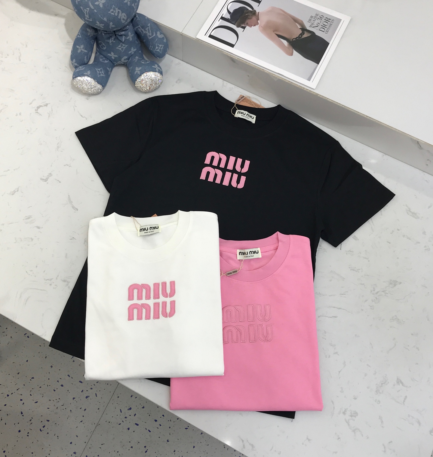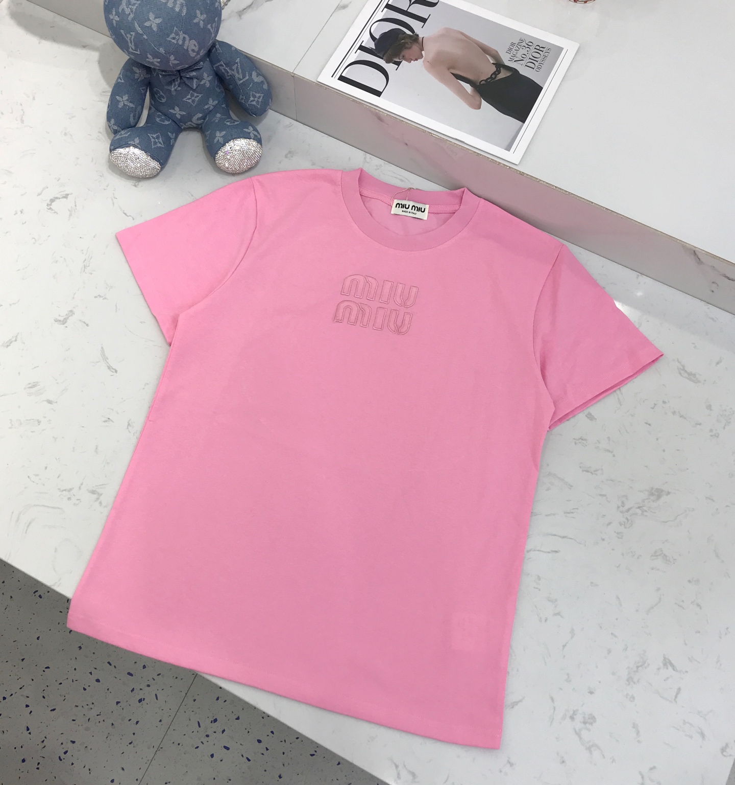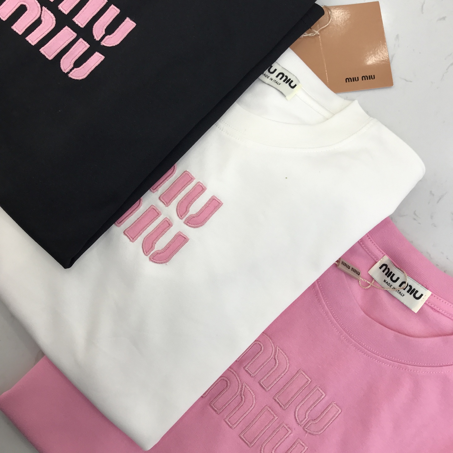 这款衣服是AAAAA 1:1 质量 (非常棒). 使用了和原版一模一样的材料. 商标部分也保持了和缪缪/Miu Miu一样. 图片拍摄是实物衣服拍摄, 您所收到的实物保证和我们图片一模一样.