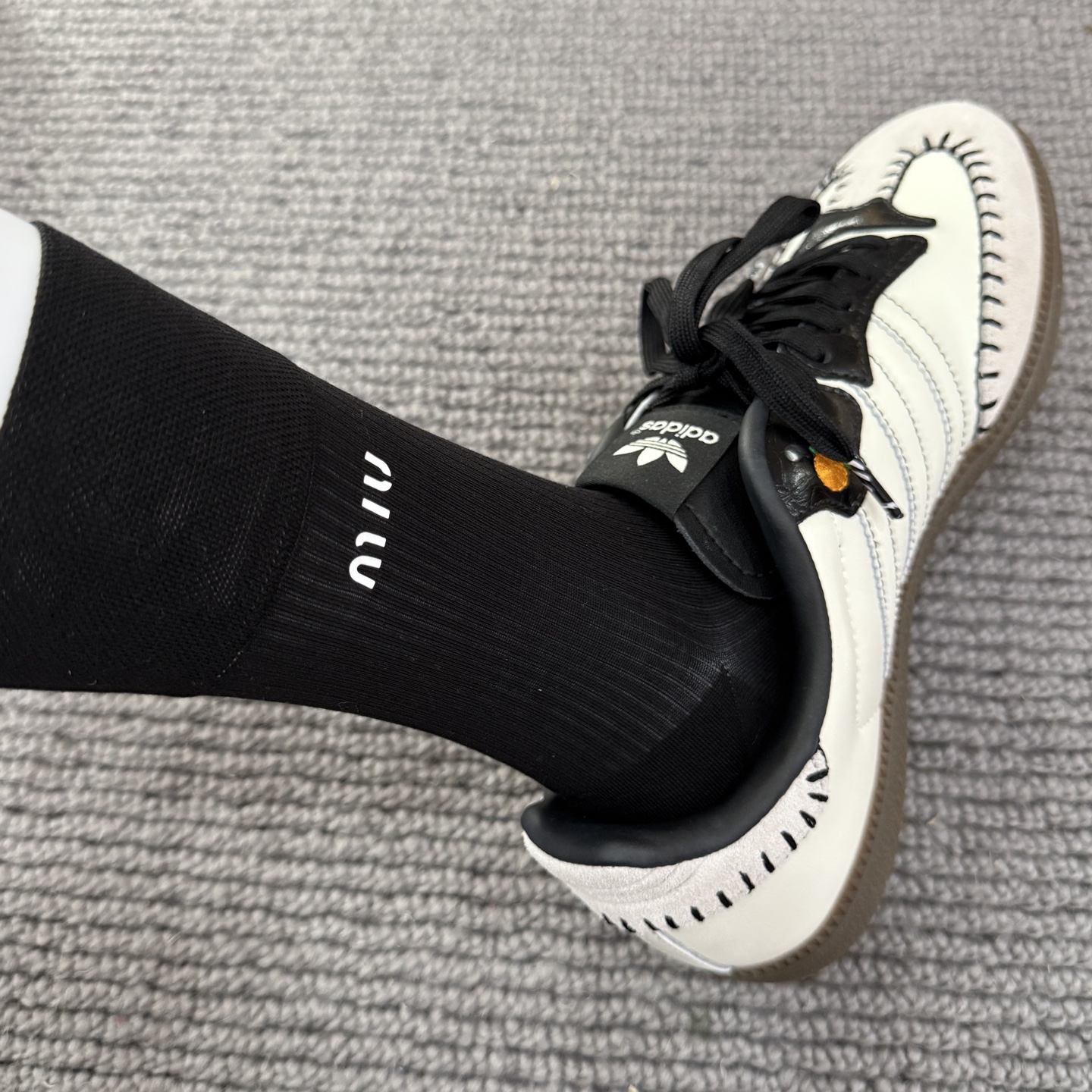 这款sock是AAAAA 1:1 质量 (非常棒). 使用了和原版一模一样的材料. 商标部分也保持了和缪缪/Miu Miu一样. 图片拍摄是实物sock拍摄, 您所收到的实物保证和我们图片一模一样.