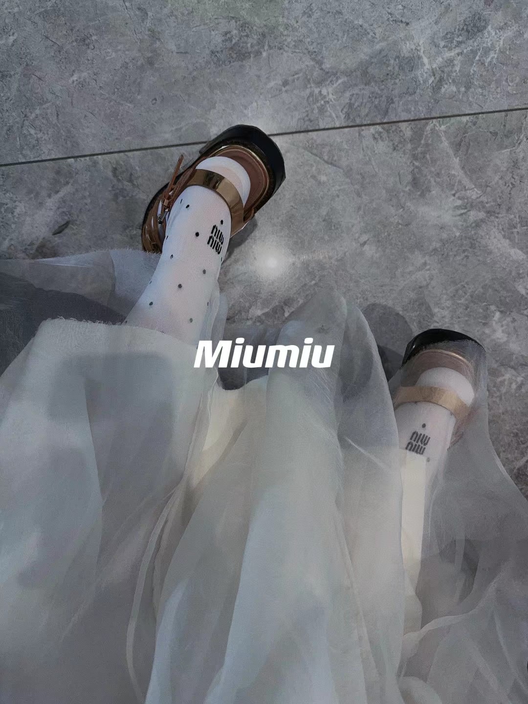这款sock是AAAAA 1:1 质量 (非常棒). 使用了和原版一模一样的材料. 商标部分也保持了和缪缪/Miu Miu一样. 图片拍摄是实物sock拍摄, 您所收到的实物保证和我们图片一模一样.