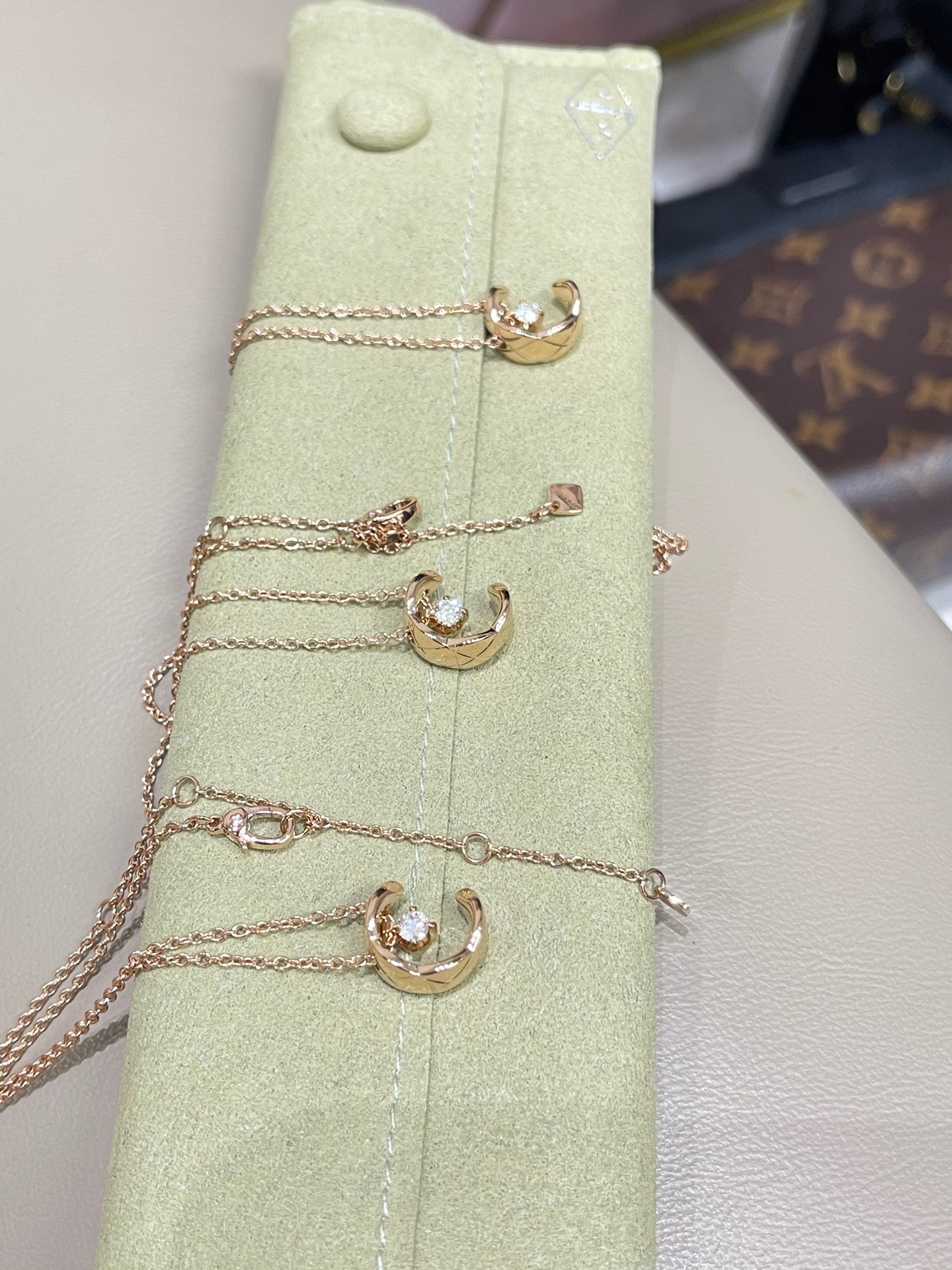 这款首饰是AAAAA 1:1 质量 (非常棒). 使用了和原版一模一样的材料. 商标部分也保持了和香奈儿/Chanel一样. 图片拍摄是实物首饰拍摄, 您所收到的实物保证和我们图片一模一样.