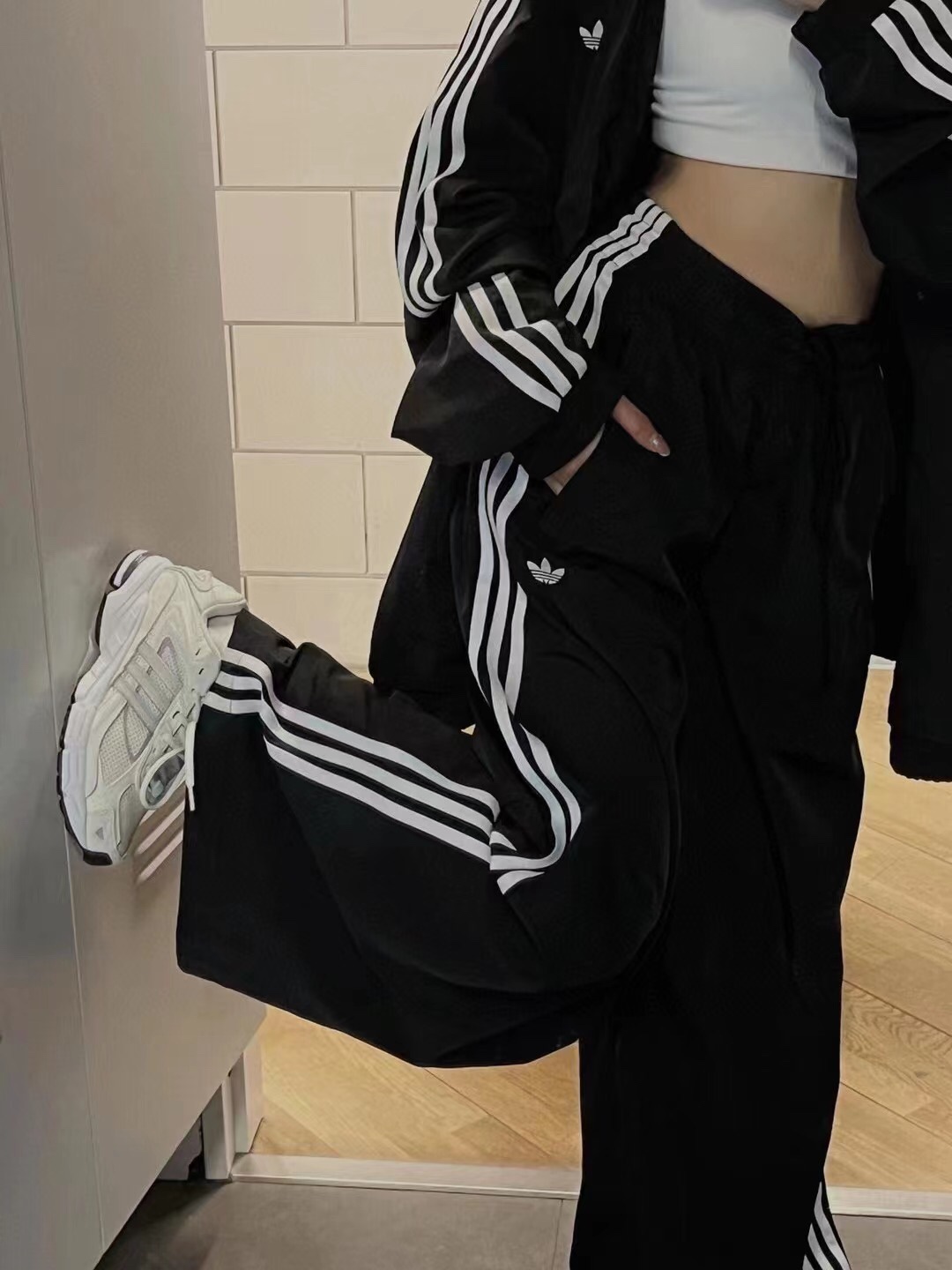 这款衣服是AAAAA 1:1 质量 (非常棒). 使用了和原版一模一样的材料. 商标部分也保持了和阿迪达斯/Adidas一样. 图片拍摄是实物衣服拍摄, 您所收到的实物保证和我们图片一模一样.