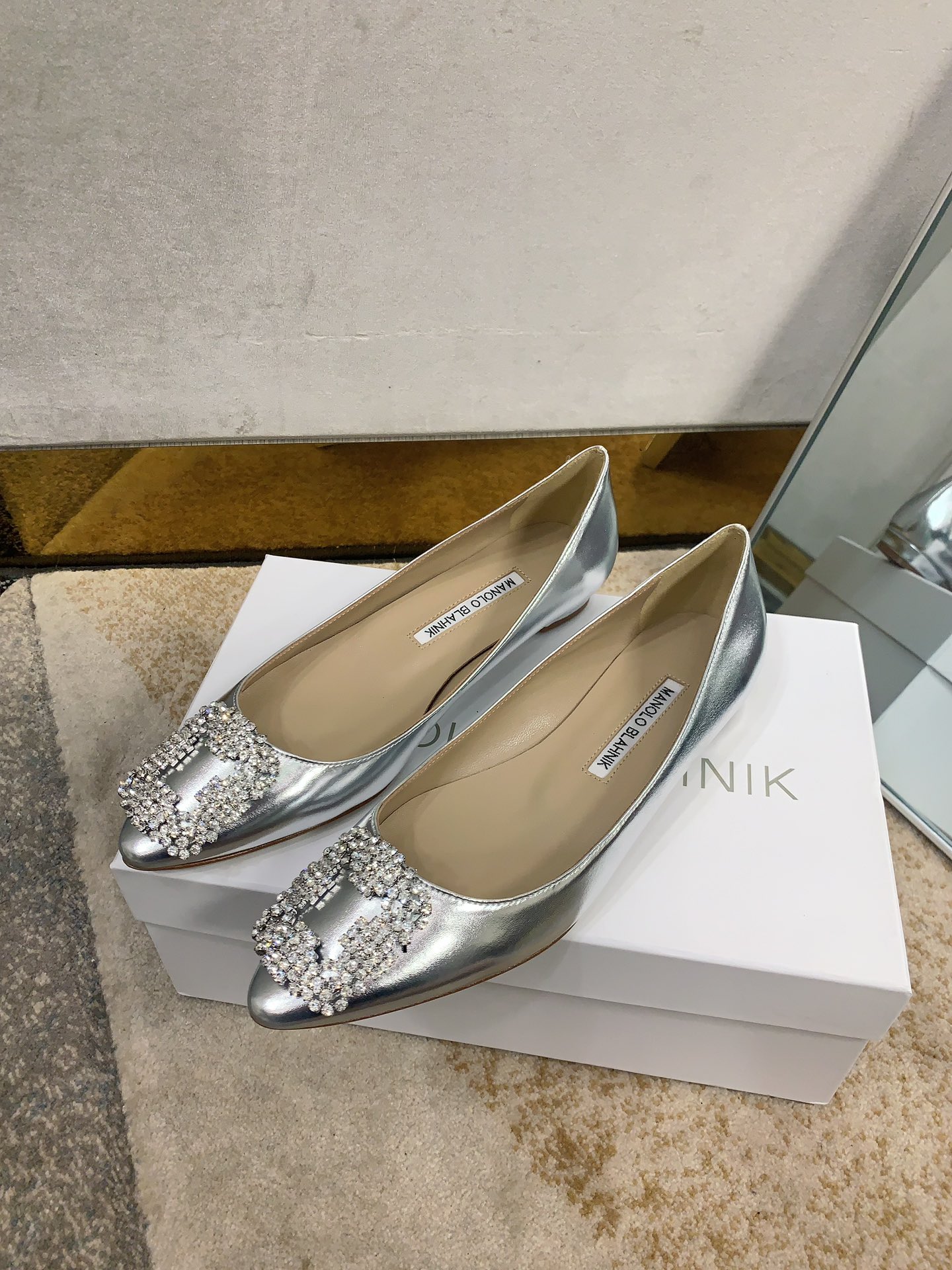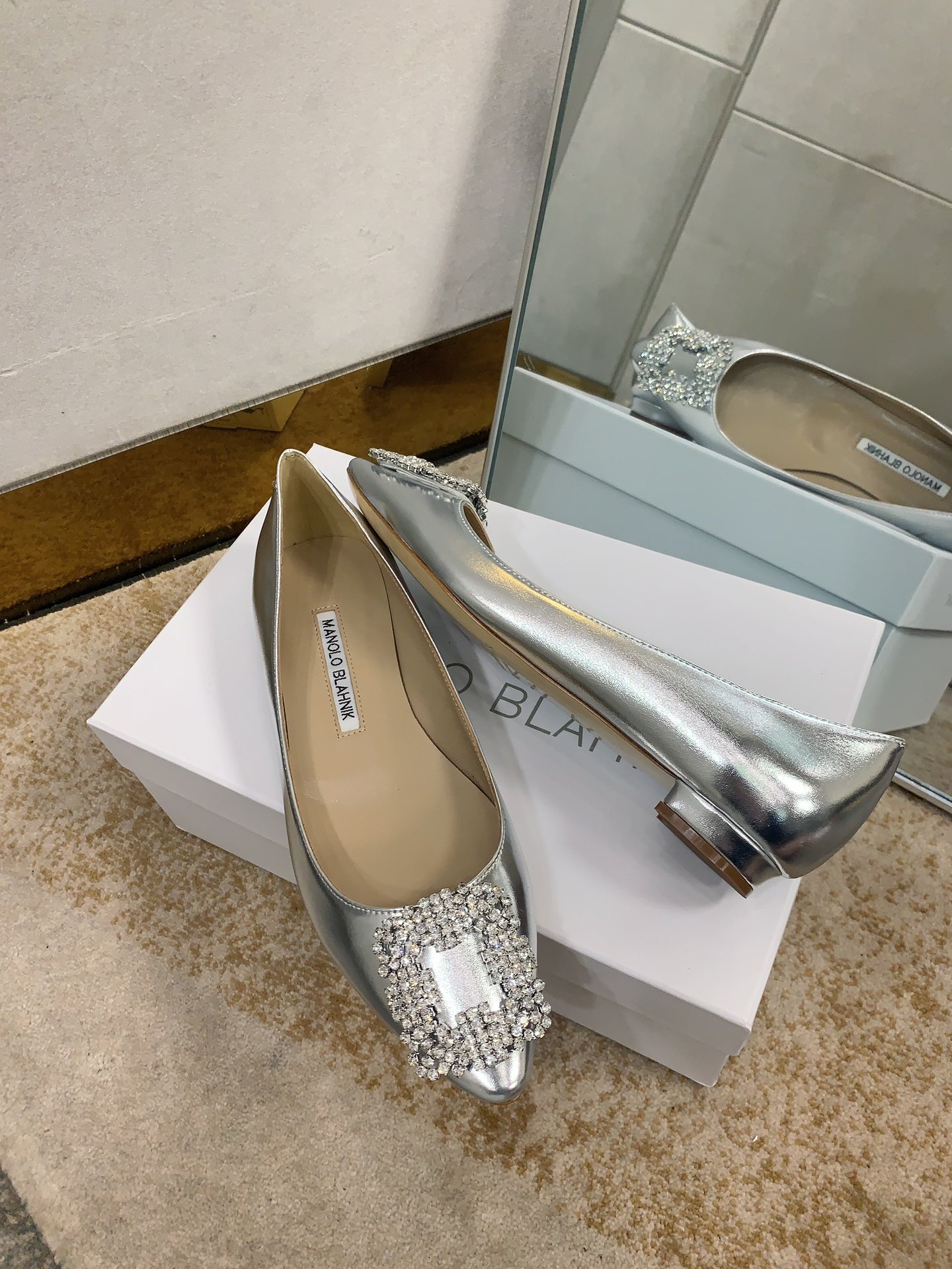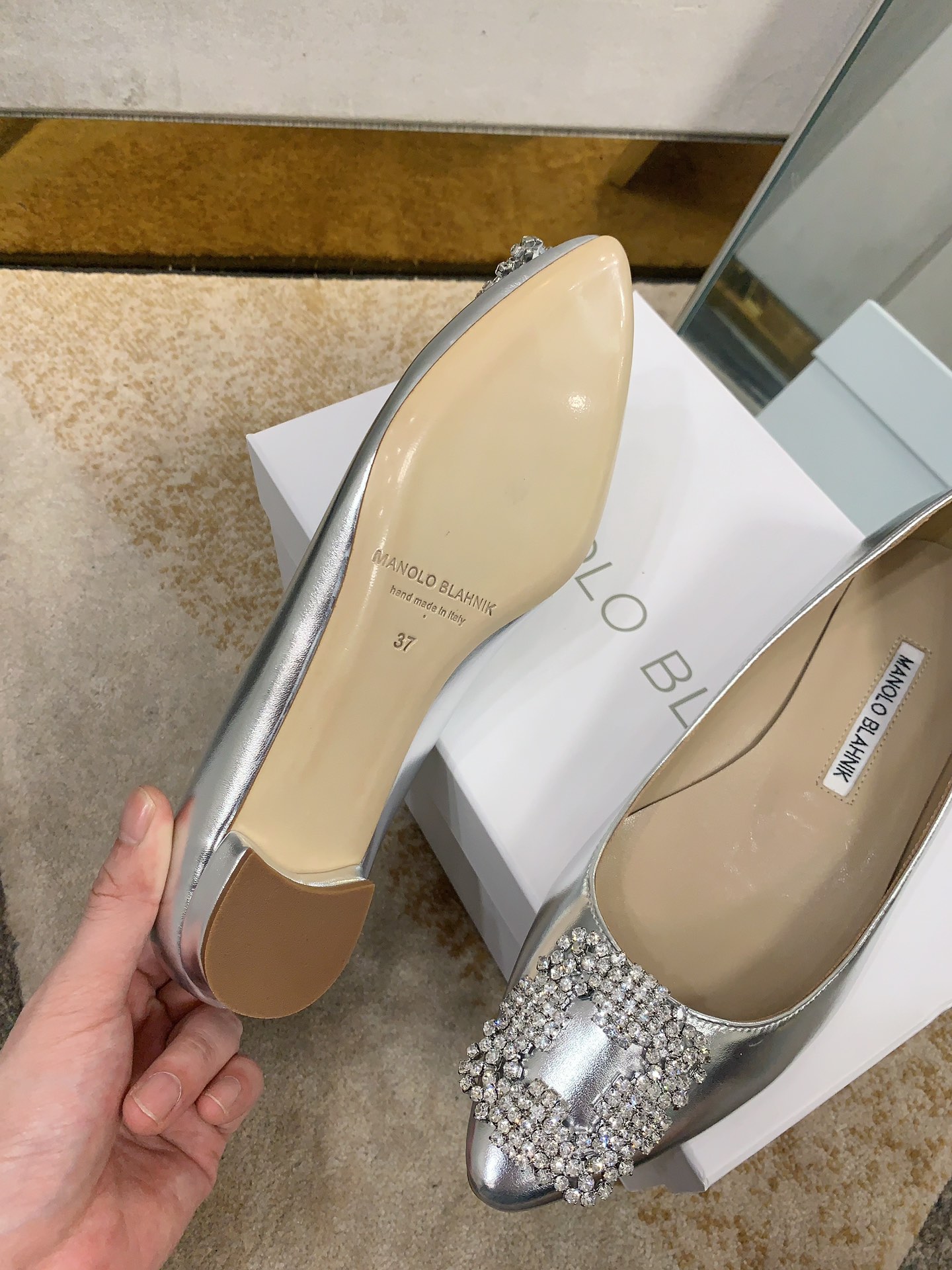 这款鞋子是AAAAA 1:1 质量 (非常棒). 使用了和原版一模一样的材料. 商标部分也保持了和马诺洛·布拉尼克/Manolo Blahnik一样. 图片拍摄是实物鞋子拍摄, 您所收到的实物保证和我们图片一模一样.