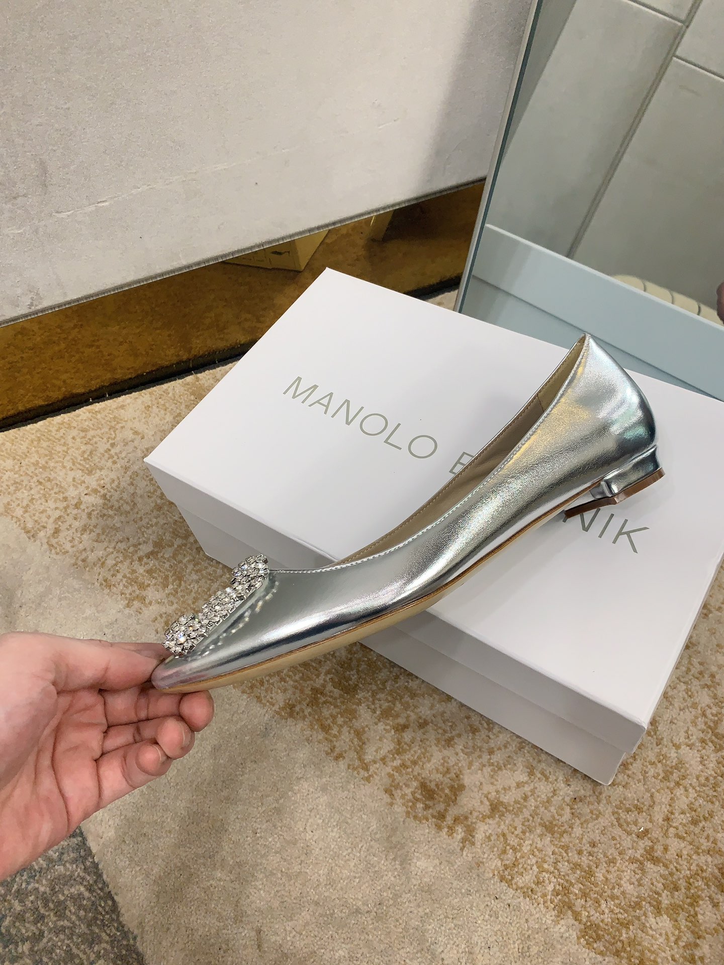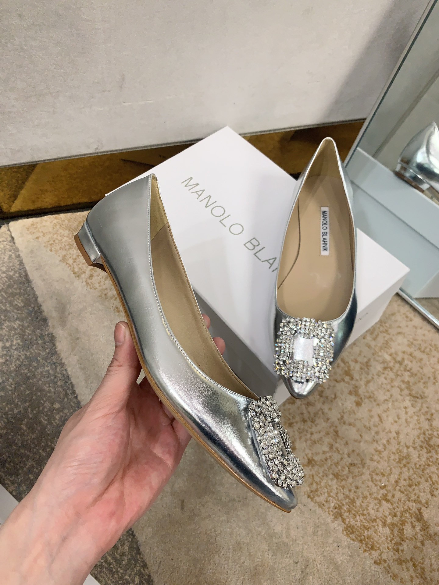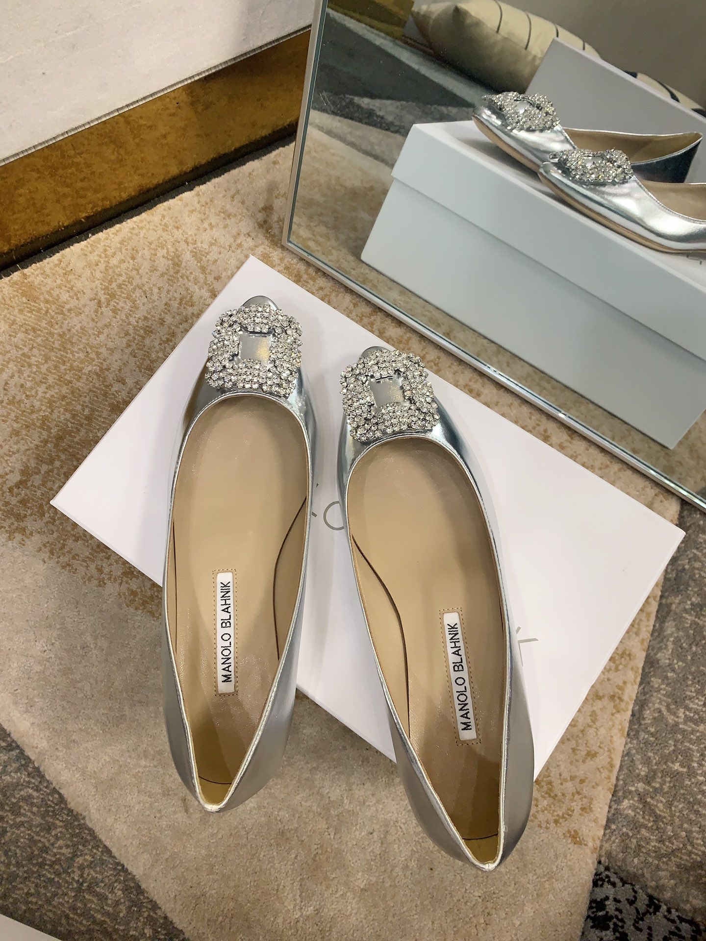 这款鞋子是AAAAA 1:1 质量 (非常棒). 使用了和原版一模一样的材料. 商标部分也保持了和马诺洛·布拉尼克/Manolo Blahnik一样. 图片拍摄是实物鞋子拍摄, 您所收到的实物保证和我们图片一模一样.