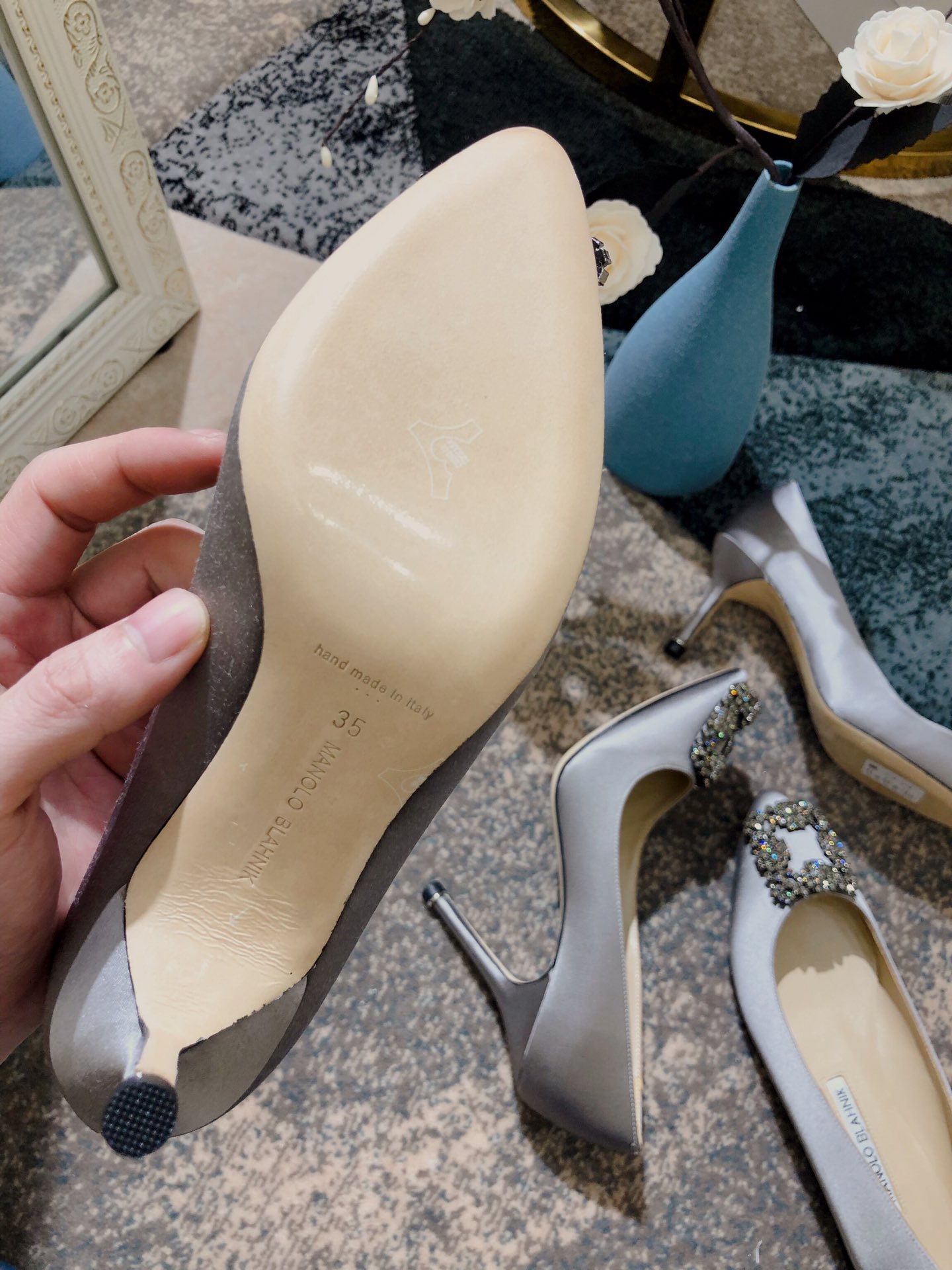 这款鞋子是AAAAA 1:1 质量 (非常棒). 使用了和原版一模一样的材料. 商标部分也保持了和马诺洛·布拉尼克/Manolo Blahnik一样. 图片拍摄是实物鞋子拍摄, 您所收到的实物保证和我们图片一模一样.