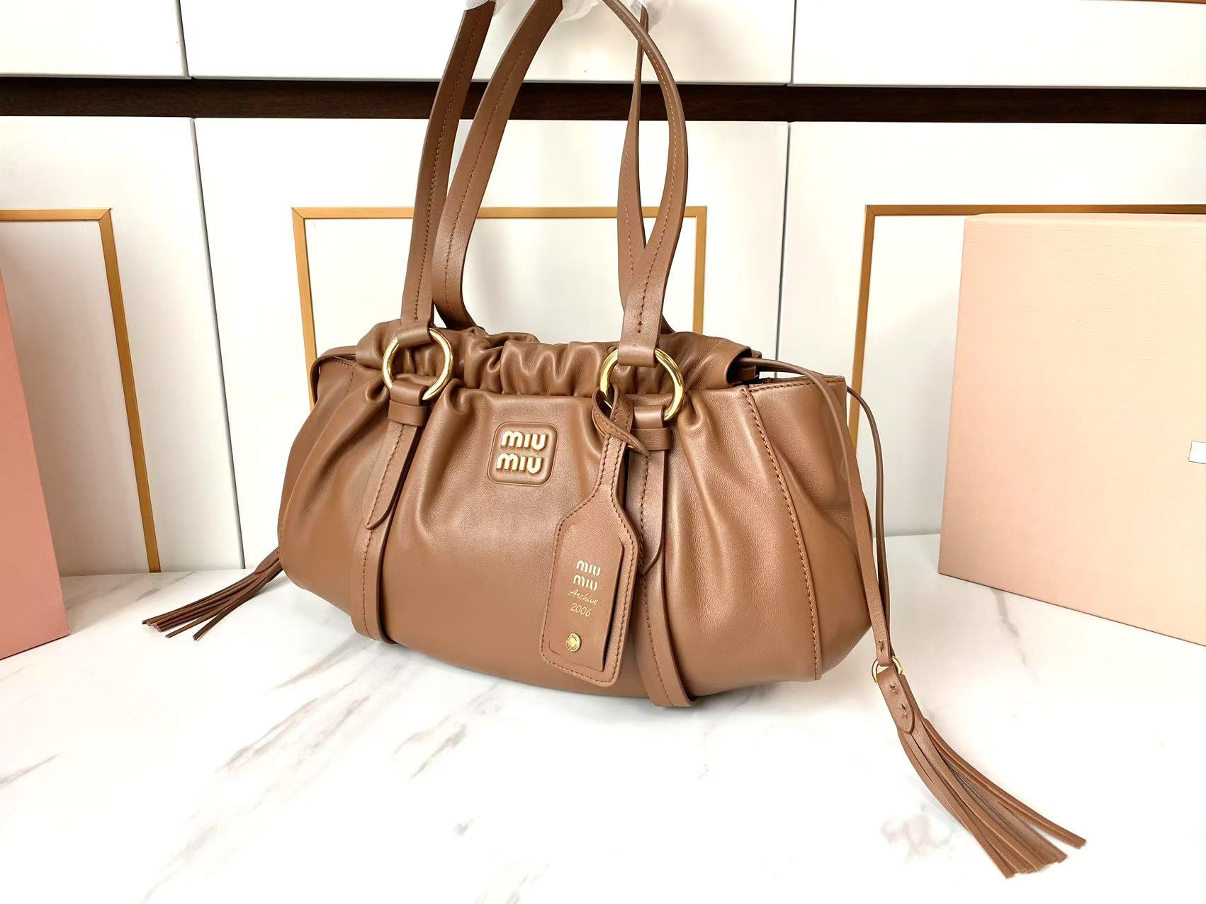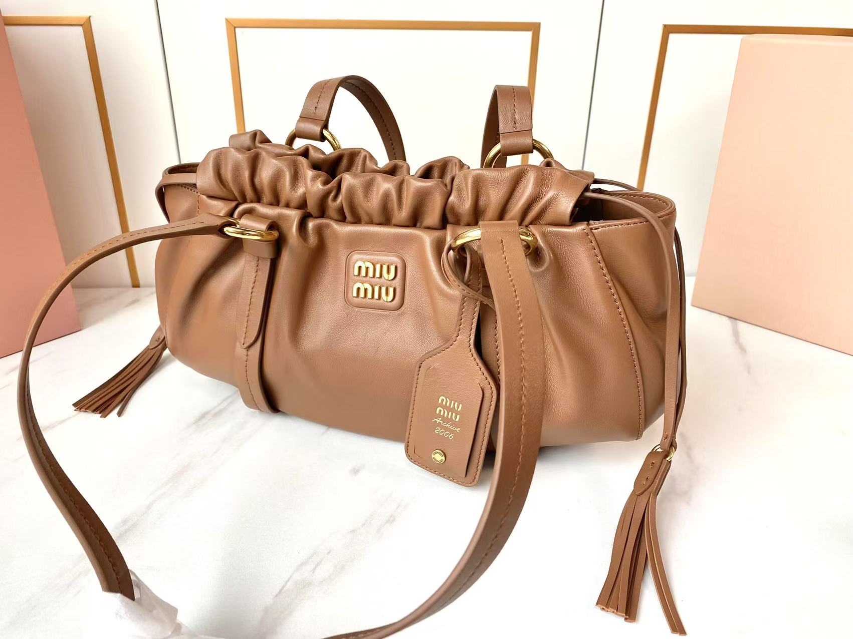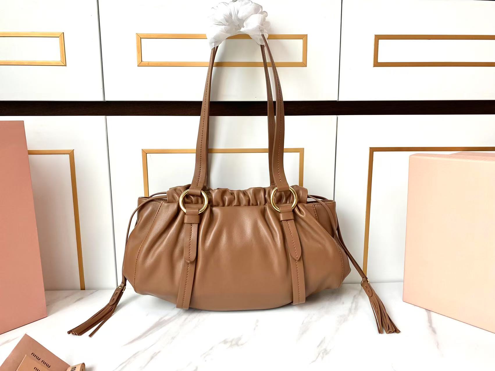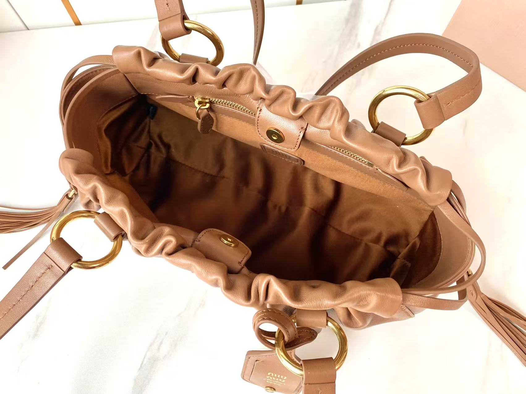 这款包包是AAAAA 1:1 质量 (非常棒). 使用了和原版一模一样的材料. 商标部分也保持了和缪缪/Miu Miu一样. 图片拍摄是实物包包拍摄, 您所收到的实物保证和我们图片一模一样.