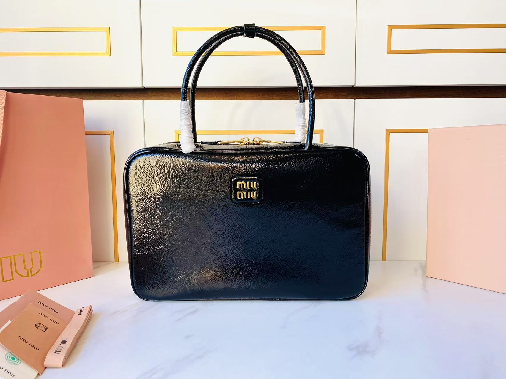 这款包包是AAAAA 1:1 质量 (非常棒). 使用了和原版一模一样的材料. 商标部分也保持了和缪缪/Miu Miu一样. 图片拍摄是实物包包拍摄, 您所收到的实物保证和我们图片一模一样.