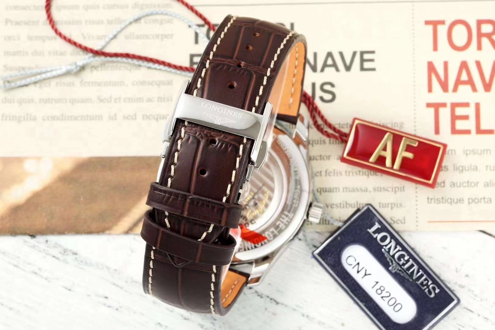 这款手表是AAAAA 1:1 质量 (非常棒). 使用了和原版一模一样的材料. 商标部分也保持了和浪琴/Longines一样. 图片拍摄是实物手表拍摄, 您所收到的实物保证和我们图片一模一样.