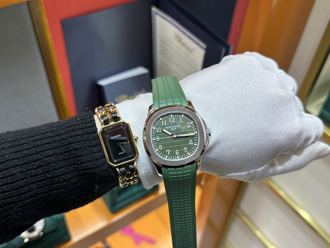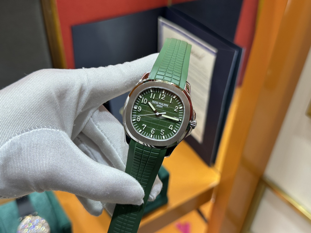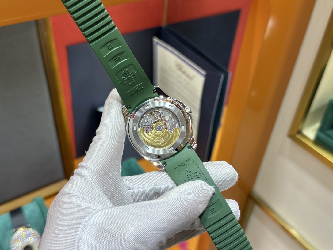 这款手表是AAAAA 1:1 质量 (非常棒). 使用了和原版一模一样的材料. 商标部分也保持了和百达翡丽/Patek Philippe一样. 图片拍摄是实物手表拍摄, 您所收到的实物保证和我们图片一模一样.