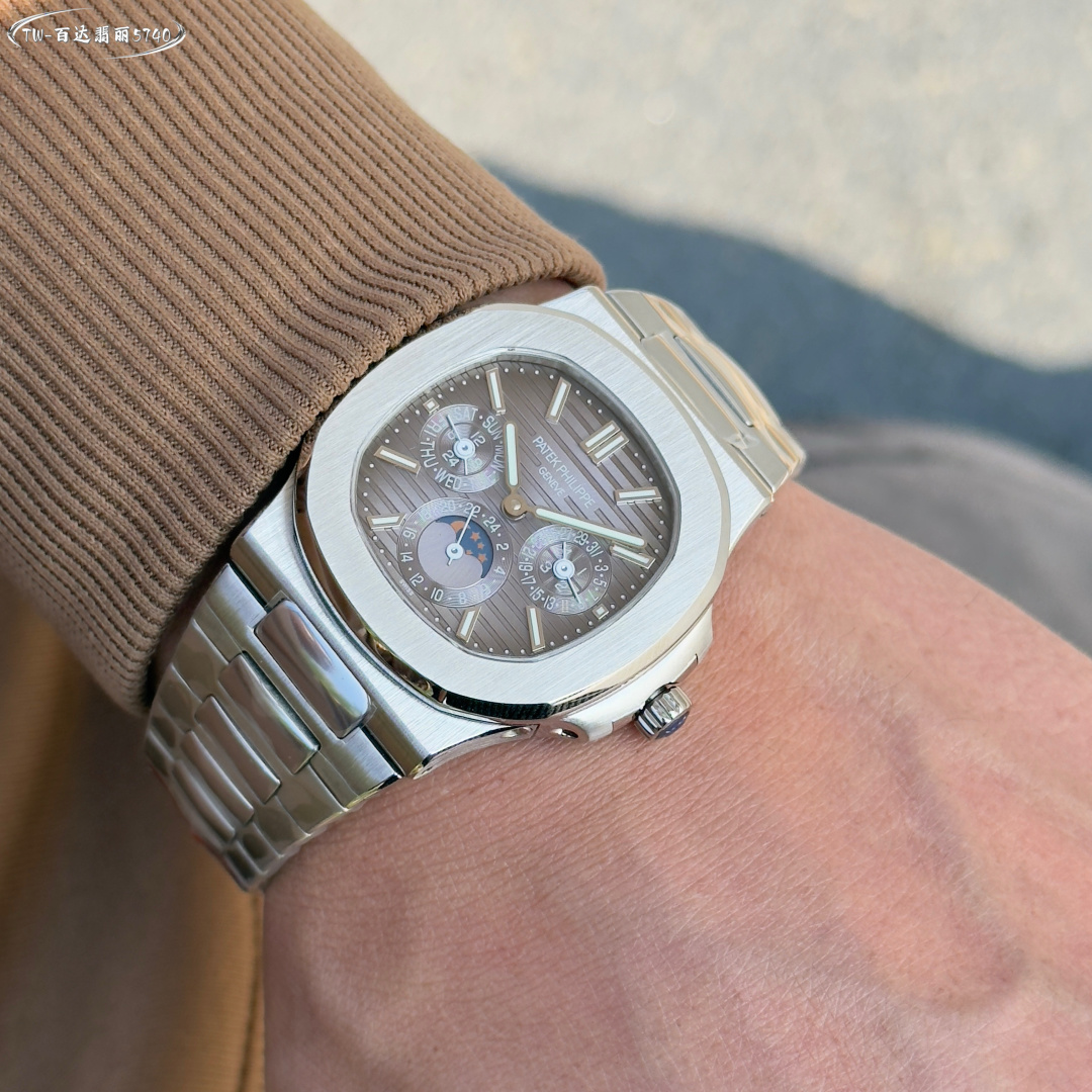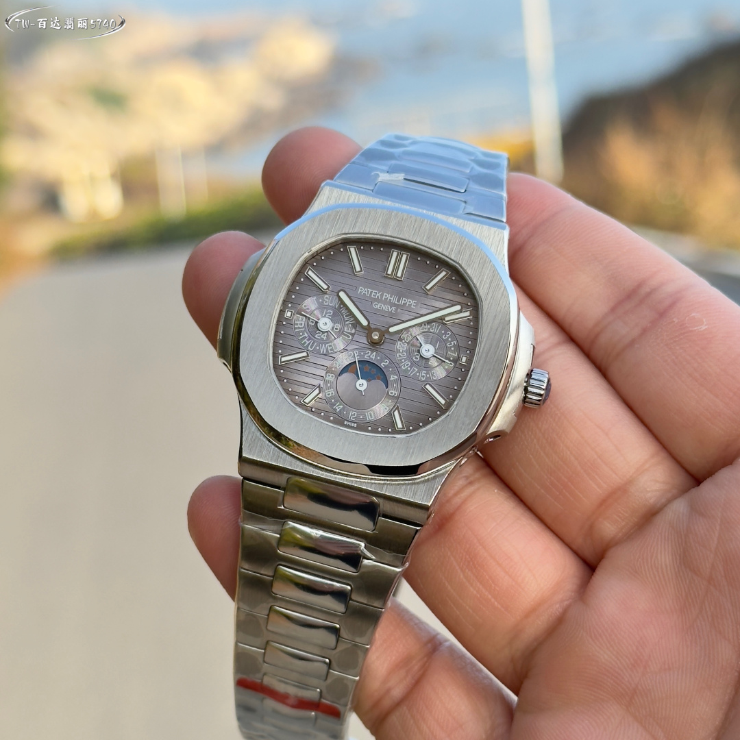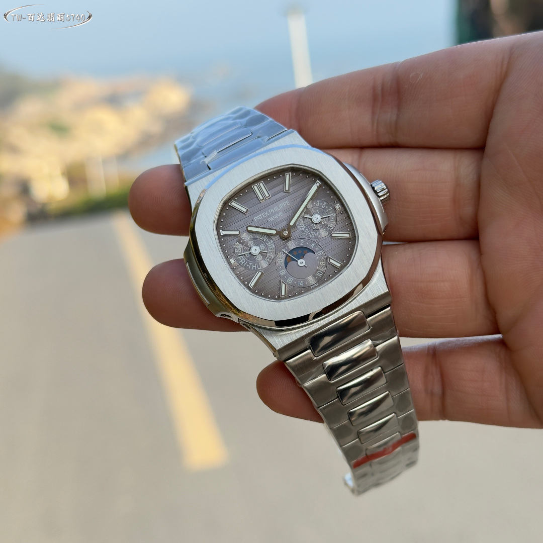 这款手表是AAAAA 1:1 质量 (非常棒). 使用了和原版一模一样的材料. 商标部分也保持了和百达翡丽/Patek Philippe一样. 图片拍摄是实物手表拍摄, 您所收到的实物保证和我们图片一模一样.