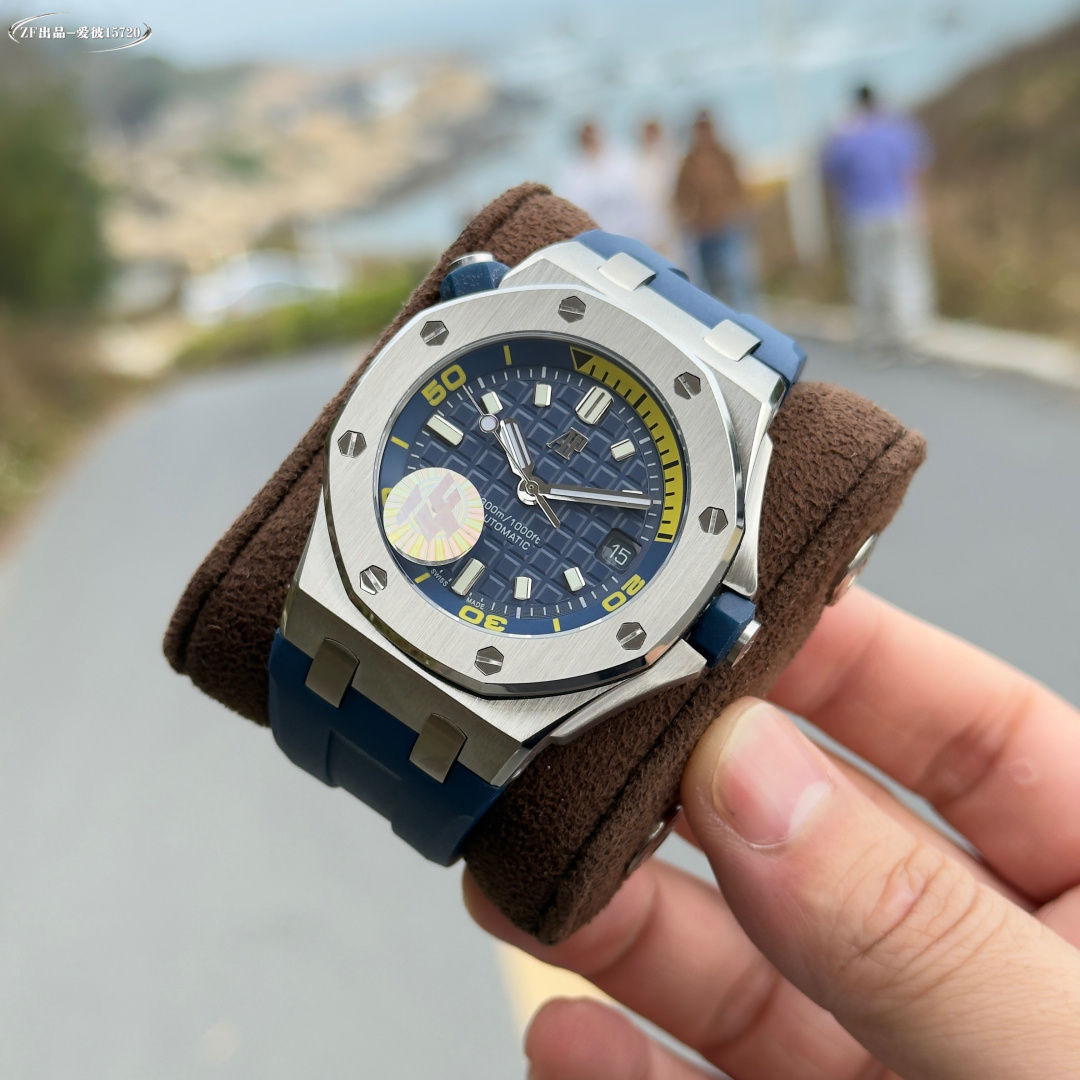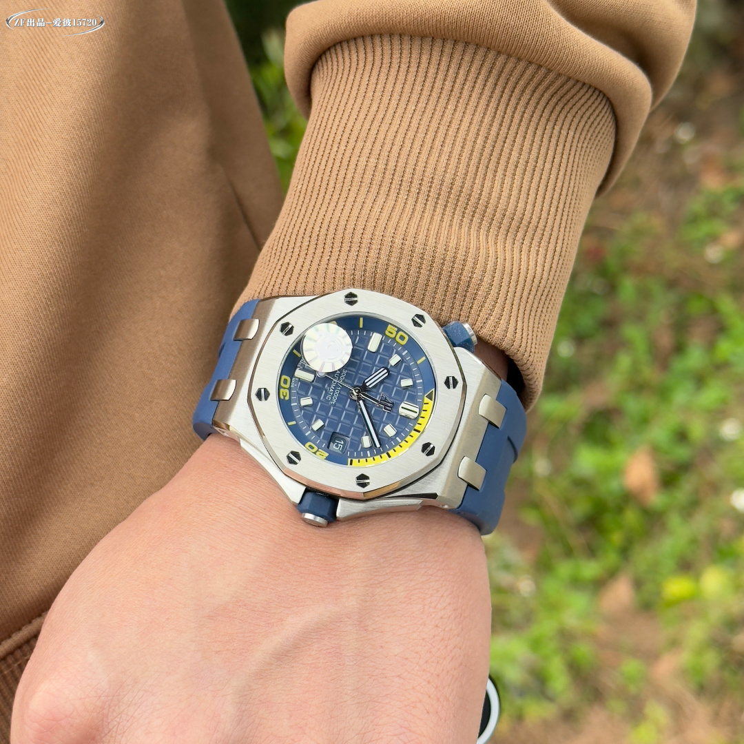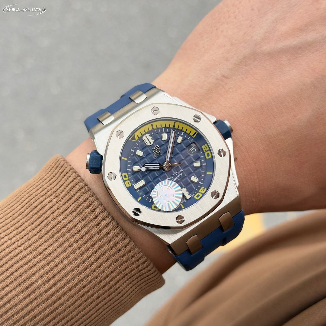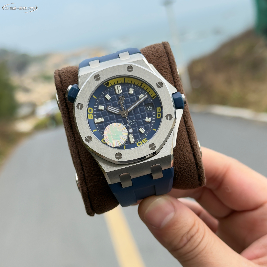 这款手表是AAAAA 1:1 质量 (非常棒). 使用了和原版一模一样的材料. 商标部分也保持了和爱彼/Audemars Piguet一样. 图片拍摄是实物手表拍摄, 您所收到的实物保证和我们图片一模一样.