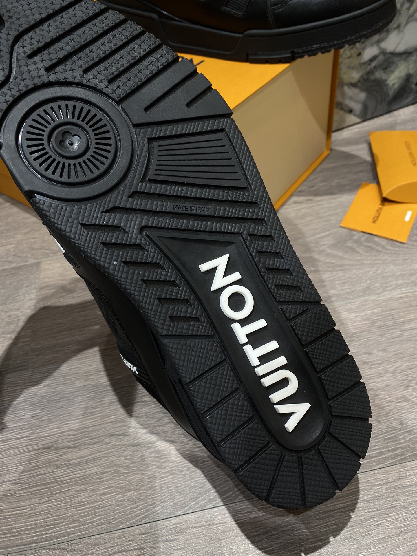 这款鞋子是AAAAA 1:1 质量 (非常棒). 使用了和原版一模一样的材料. 商标部分也保持了和路易威登/Louis Vuitton一样. 图片拍摄是实物鞋子拍摄, 您所收到的实物保证和我们图片一模一样.