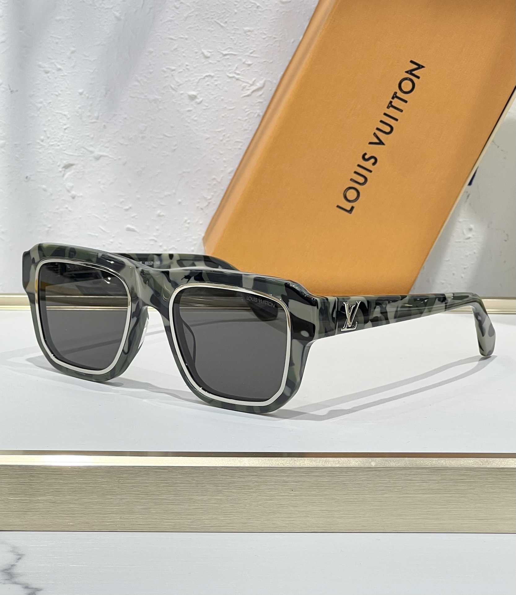 这款太阳眼镜是AAAAA 1:1 质量 (非常棒). 使用了和原版一模一样的材料. 商标部分也保持了和路易威登/Louis Vuitton一样. 图片拍摄是实物太阳眼镜拍摄, 您所收到的实物保证和我们图片一模一样.