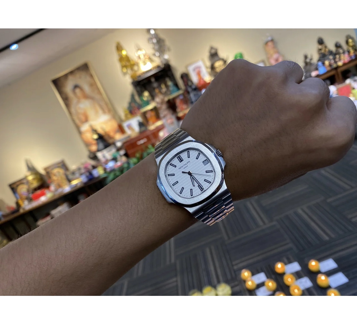 这款手表是AAAAA 1:1 质量 (非常棒). 使用了和原版一模一样的材料. 商标部分也保持了和百达翡丽/Patek Philippe一样. 图片拍摄是实物手表拍摄, 您所收到的实物保证和我们图片一模一样.