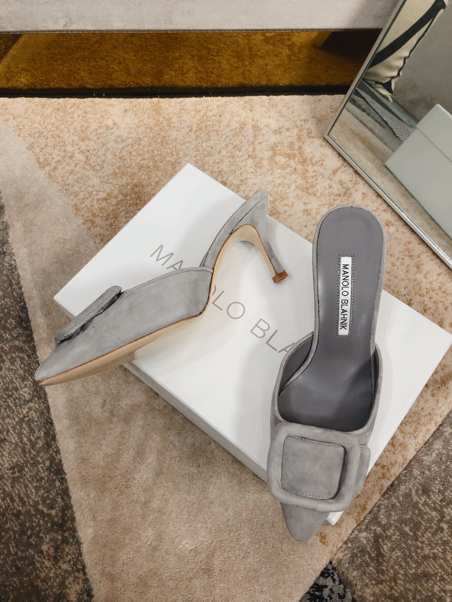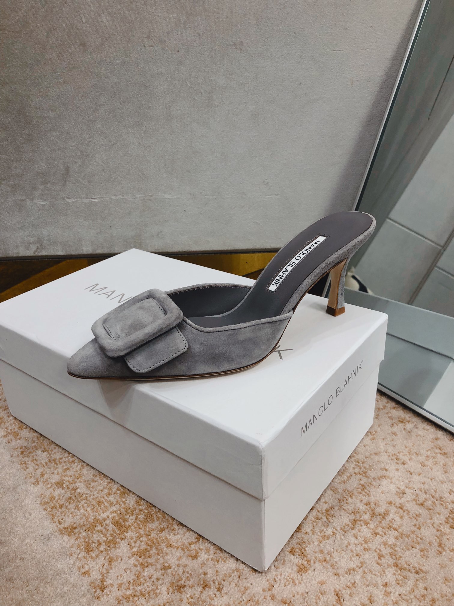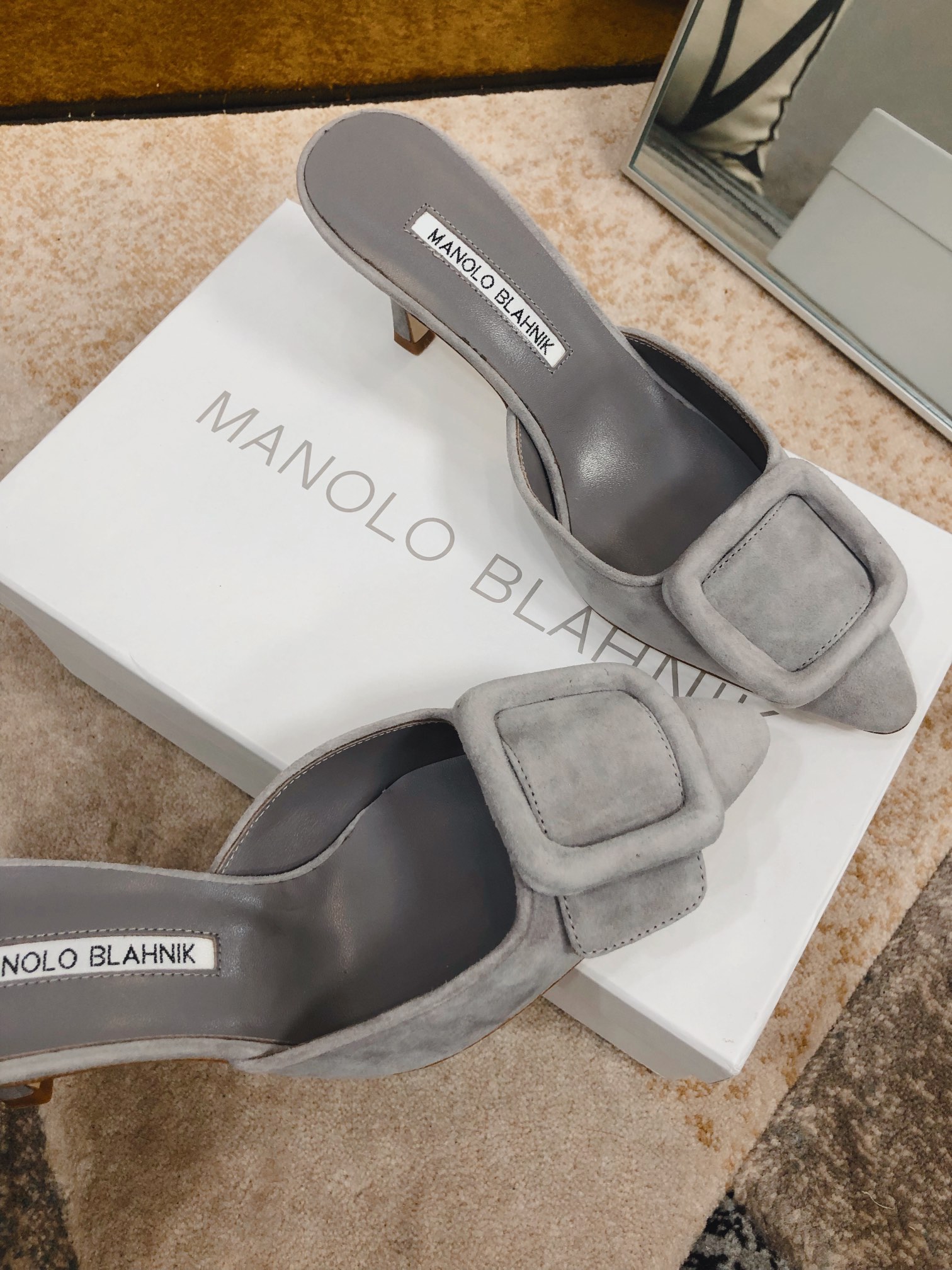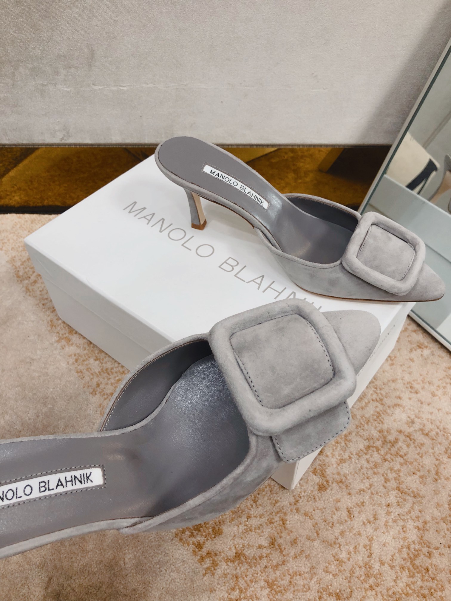 这款鞋子是AAAAA 1:1 质量 (非常棒). 使用了和原版一模一样的材料. 商标部分也保持了和马诺洛·布拉尼克/Manolo Blahnik一样. 图片拍摄是实物鞋子拍摄, 您所收到的实物保证和我们图片一模一样.