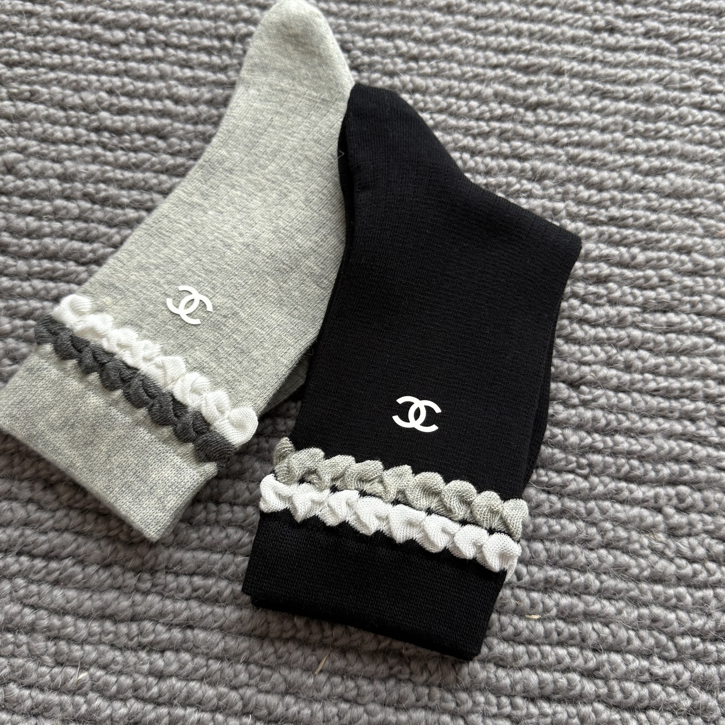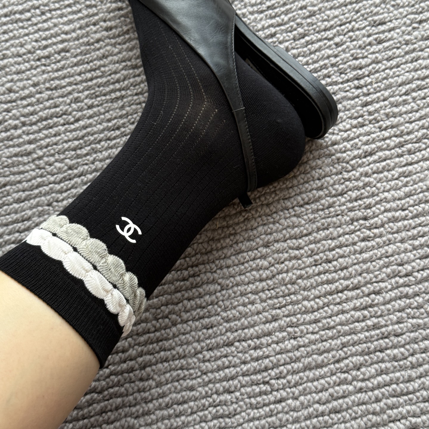 这款sock是AAAAA 1:1 质量 (非常棒). 使用了和原版一模一样的材料. 商标部分也保持了和香奈儿/Chanel一样. 图片拍摄是实物sock拍摄, 您所收到的实物保证和我们图片一模一样.