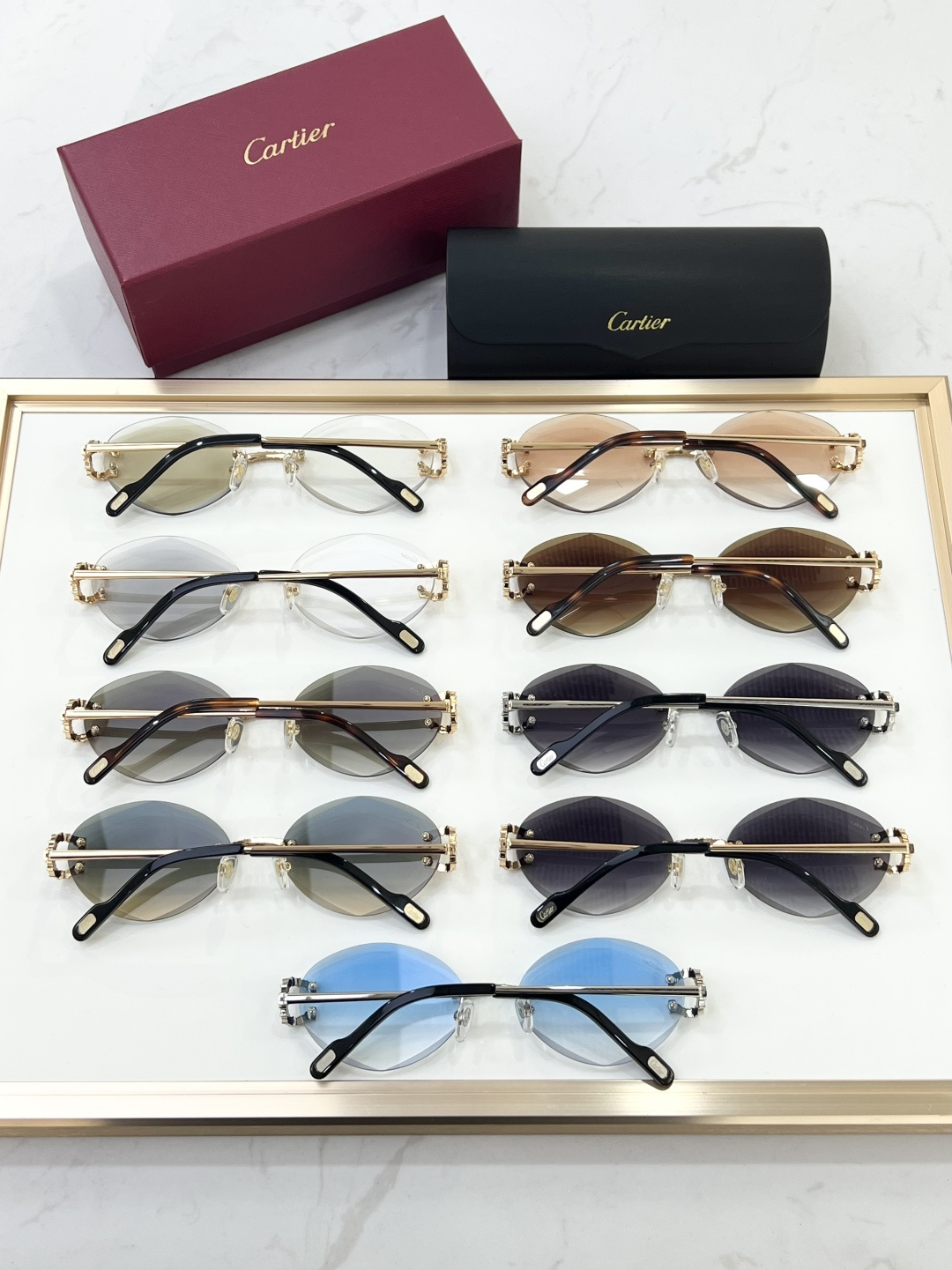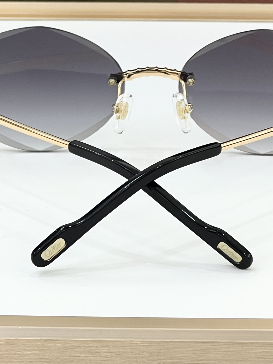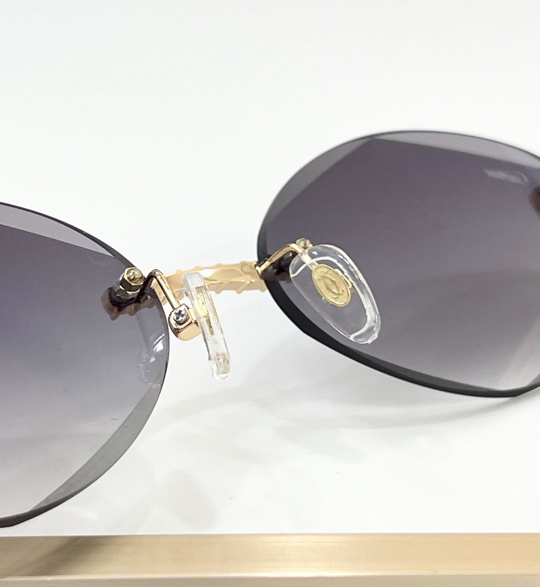 这款太阳眼镜是AAAAA 1:1 质量 (非常棒). 使用了和原版一模一样的材料. 商标部分也保持了和卡地亚/Cartier一样. 图片拍摄是实物太阳眼镜拍摄, 您所收到的实物保证和我们图片一模一样.
