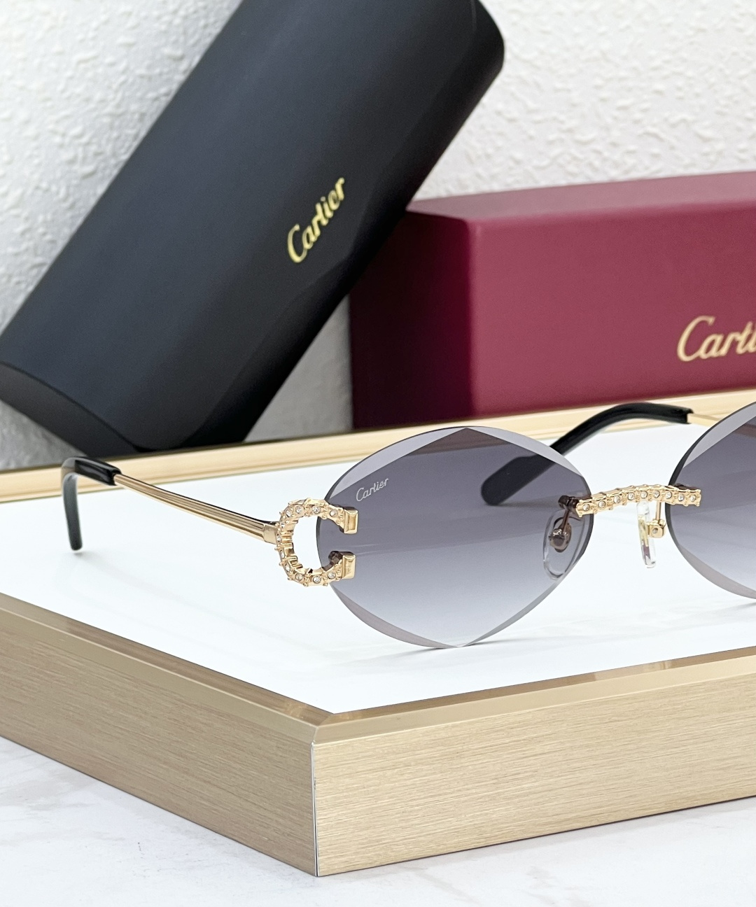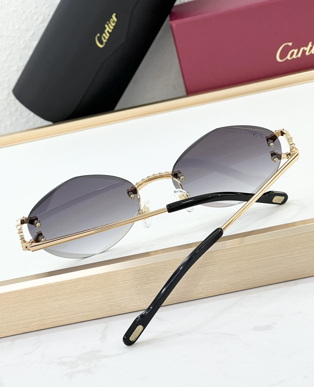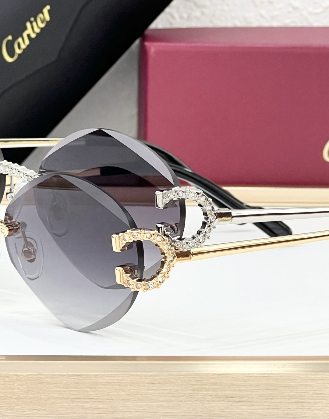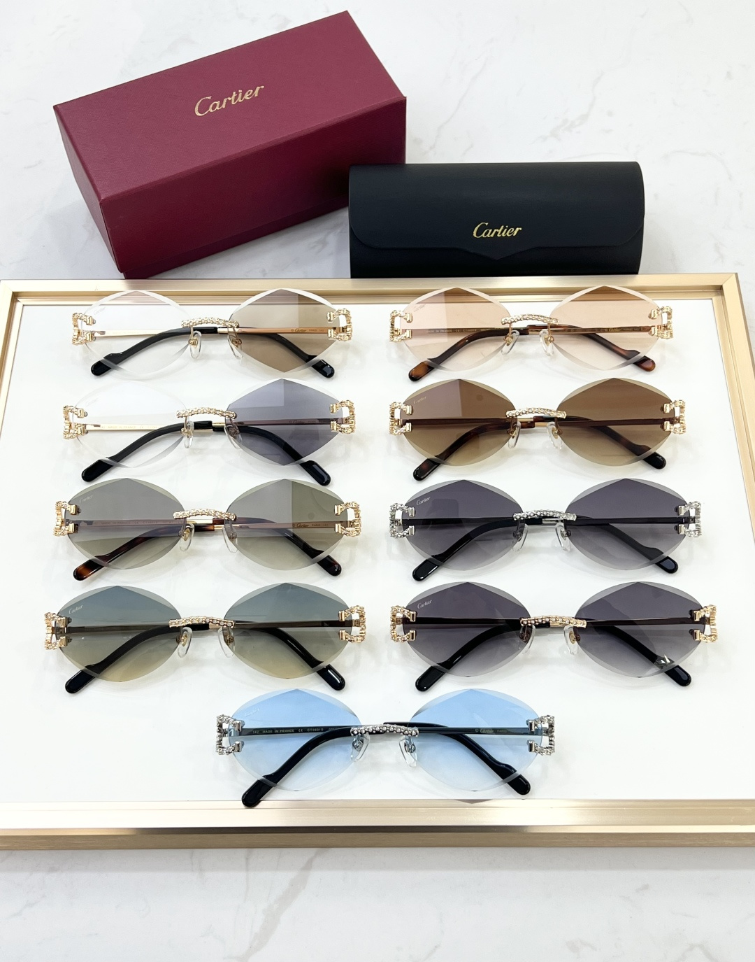 这款太阳眼镜是AAAAA 1:1 质量 (非常棒). 使用了和原版一模一样的材料. 商标部分也保持了和卡地亚/Cartier一样. 图片拍摄是实物太阳眼镜拍摄, 您所收到的实物保证和我们图片一模一样.