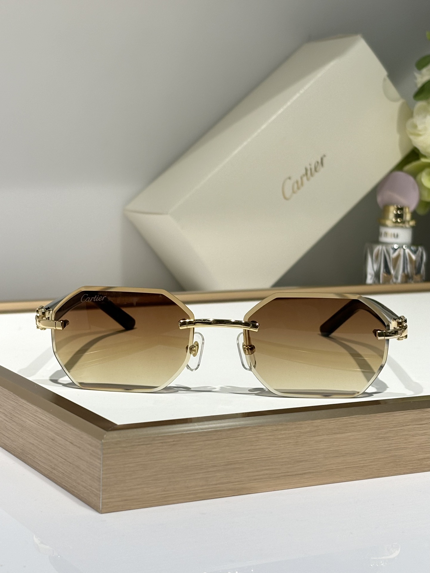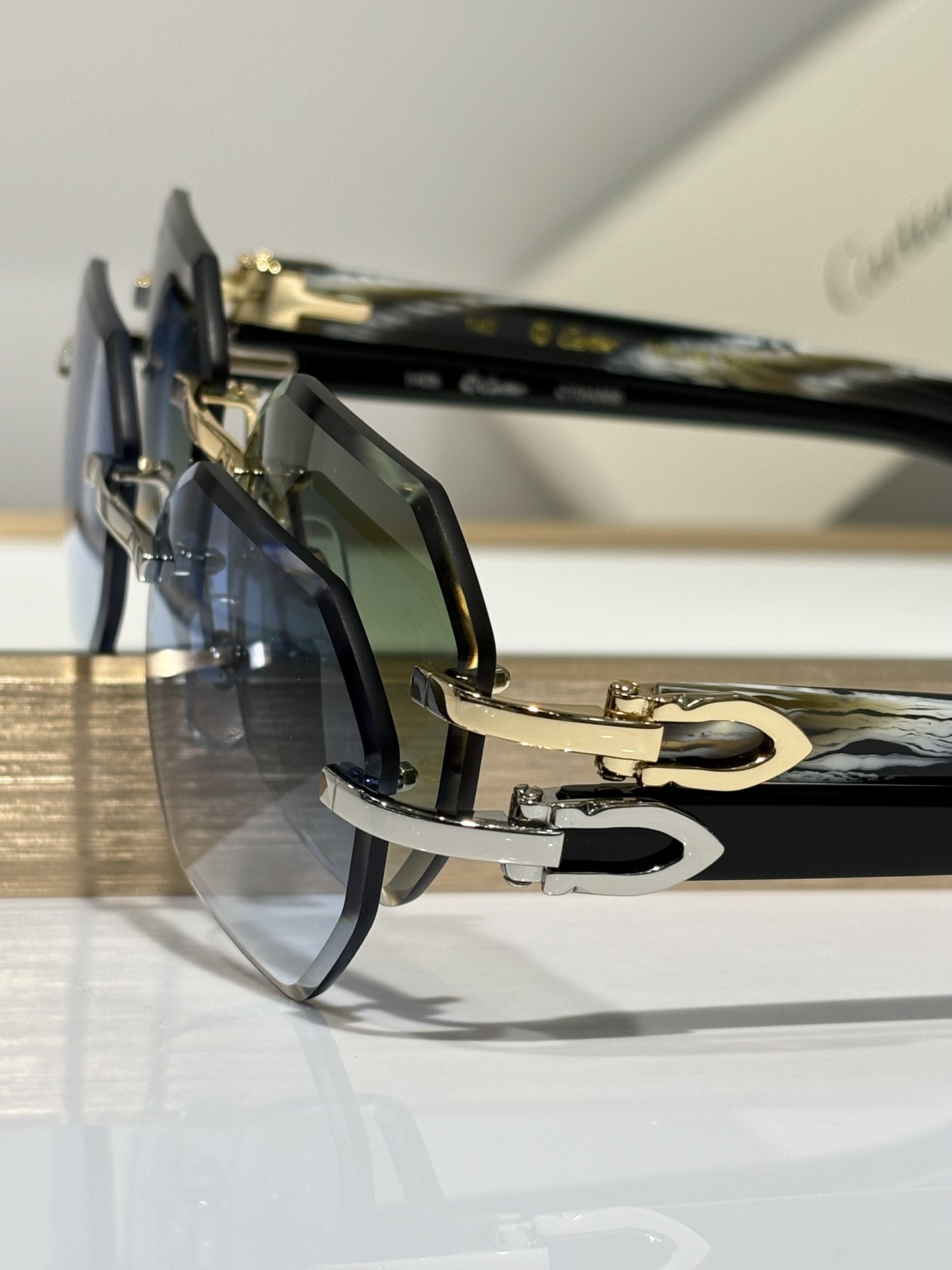 这款太阳眼镜是AAAAA 1:1 质量 (非常棒). 使用了和原版一模一样的材料. 商标部分也保持了和卡地亚/Cartier一样. 图片拍摄是实物太阳眼镜拍摄, 您所收到的实物保证和我们图片一模一样.