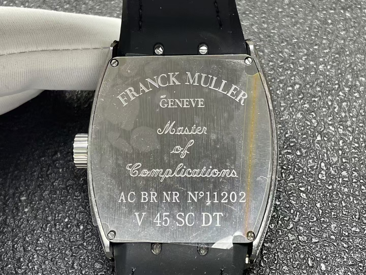 这款手表是AAAAA 1:1 质量 (非常棒). 使用了和原版一模一样的材料. 商标部分也保持了和Franck Mulle一样. 图片拍摄是实物手表拍摄, 您所收到的实物保证和我们图片一模一样.