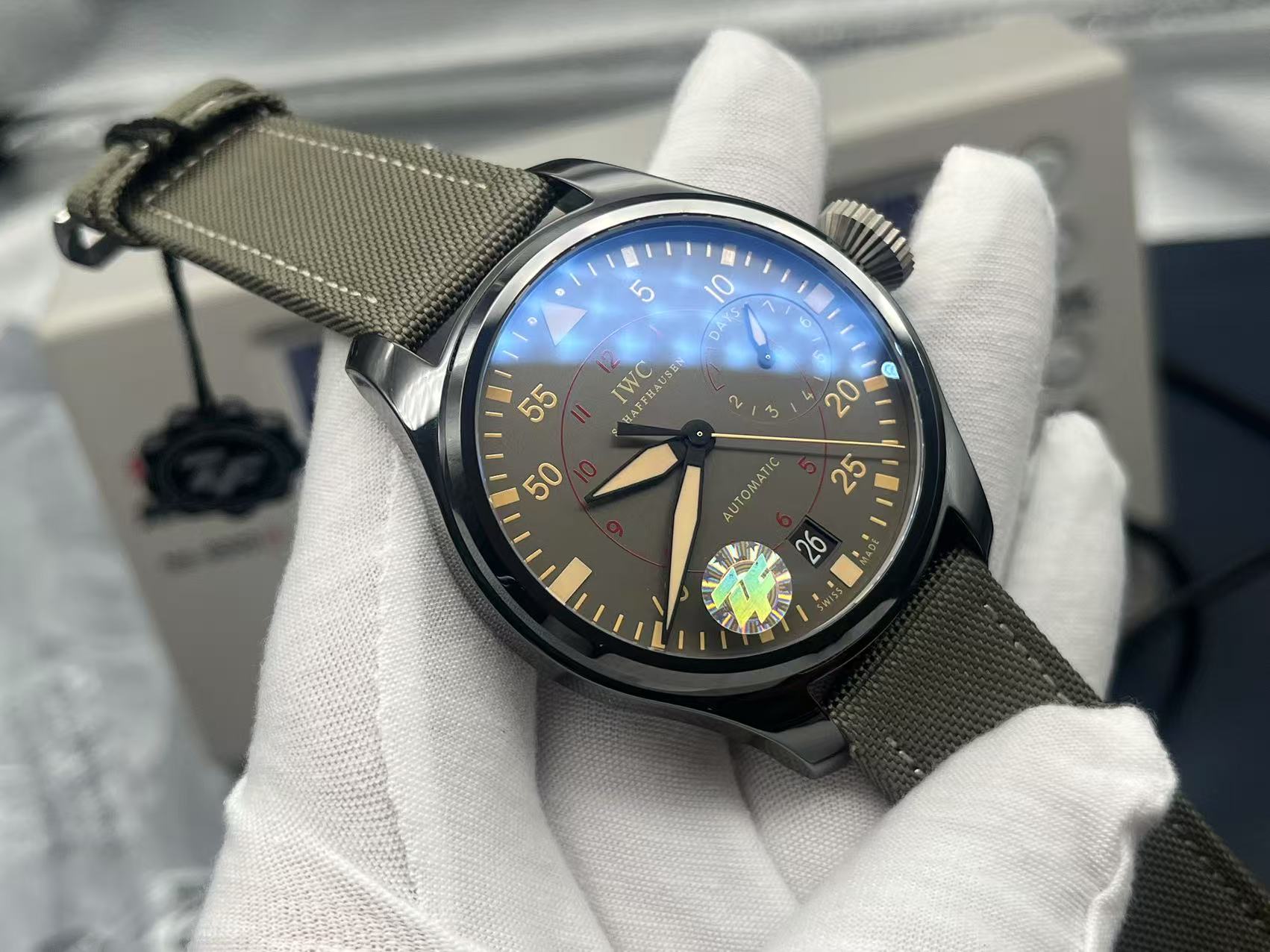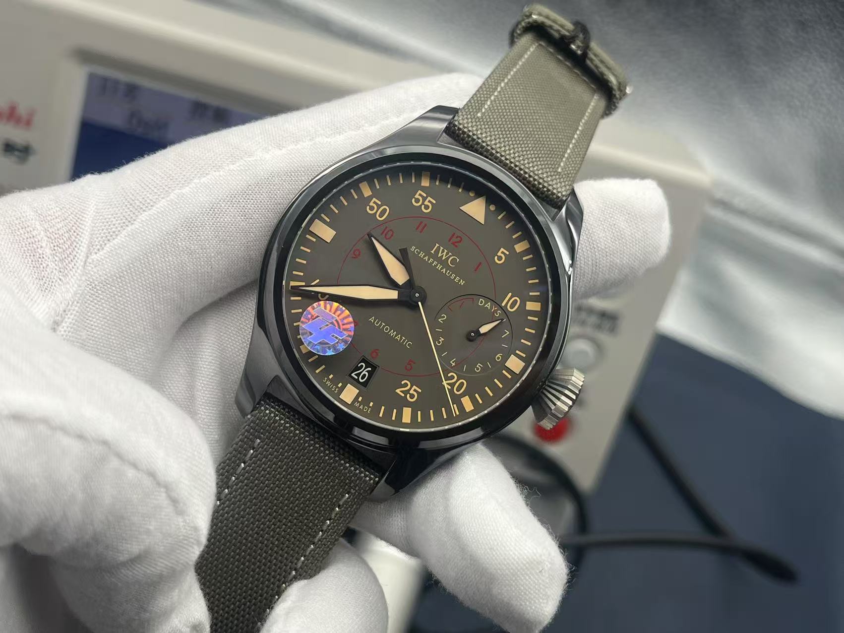这款手表是AAAAA 1:1 质量 (非常棒). 使用了和原版一模一样的材料. 商标部分也保持了和万国表/IWC Schaffhausen一样. 图片拍摄是实物手表拍摄, 您所收到的实物保证和我们图片一模一样.
