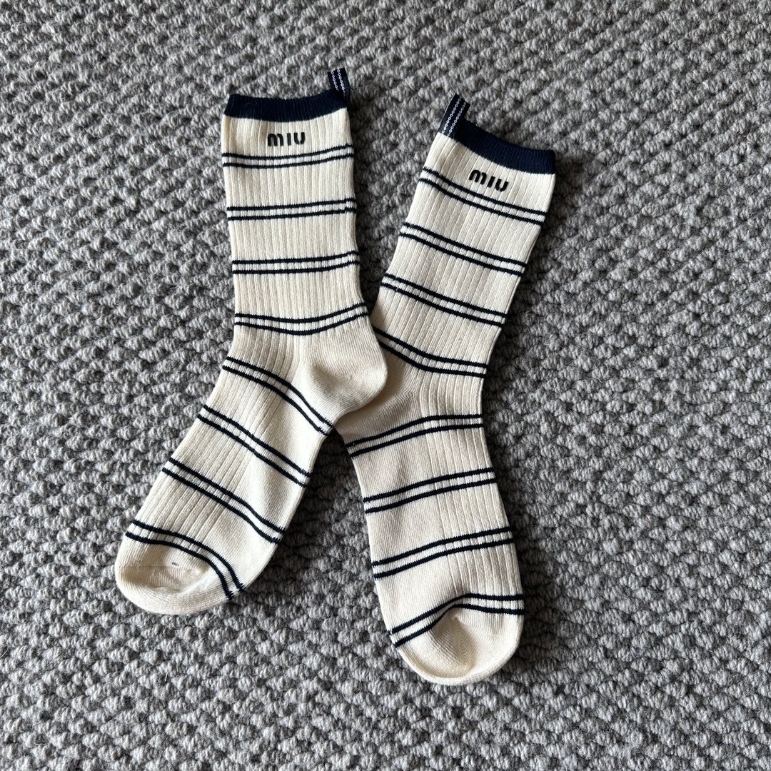 这款sock是AAAAA 1:1 质量 (非常棒). 使用了和原版一模一样的材料. 商标部分也保持了和缪缪/Miu Miu一样. 图片拍摄是实物sock拍摄, 您所收到的实物保证和我们图片一模一样.