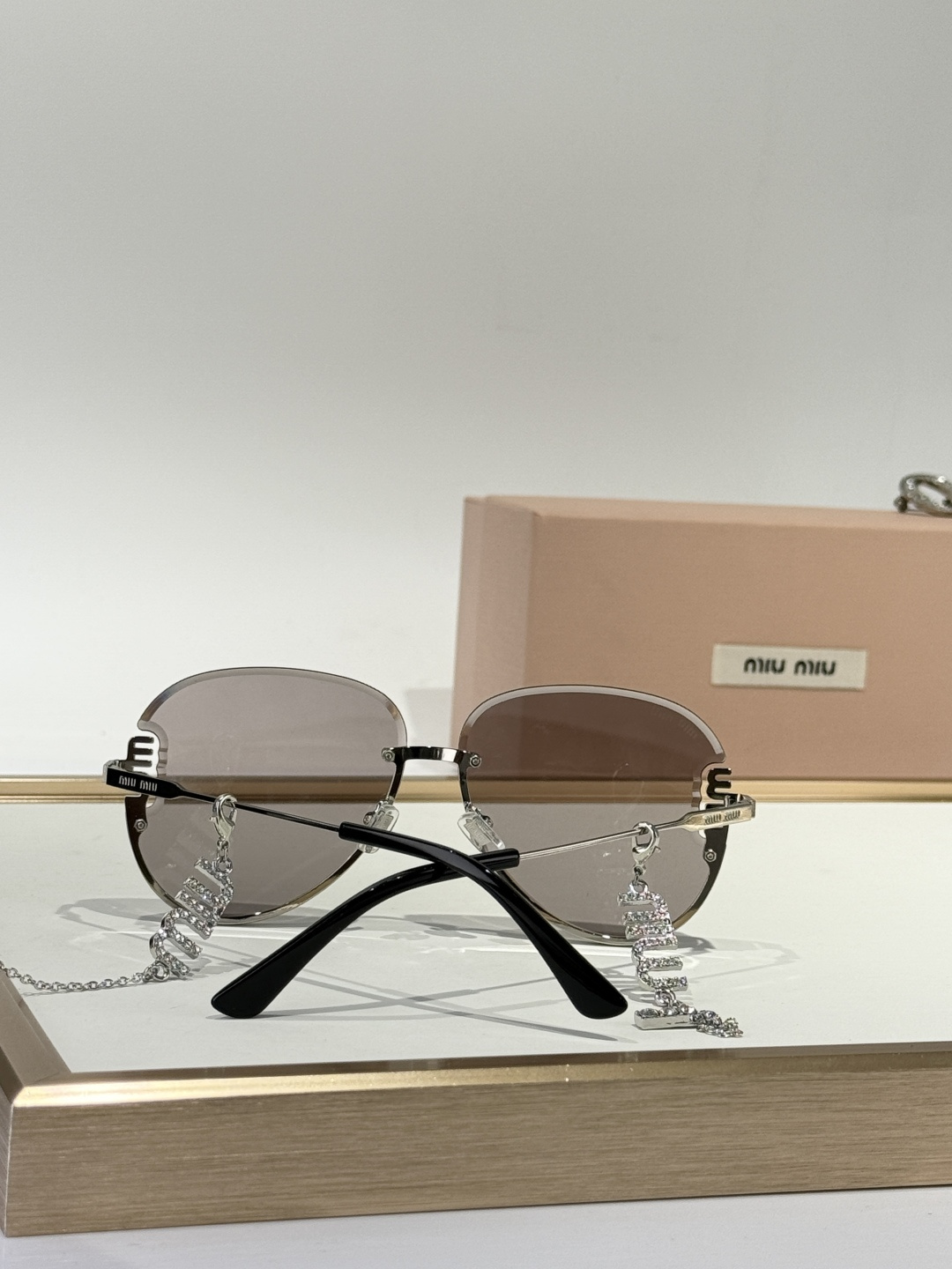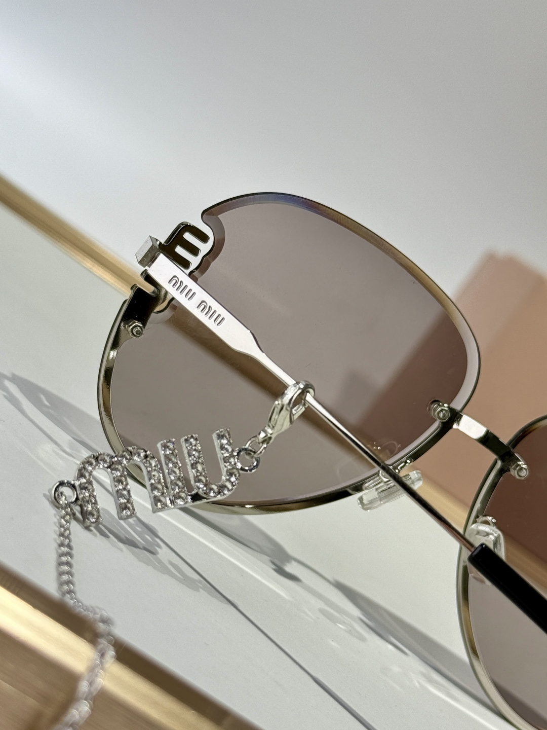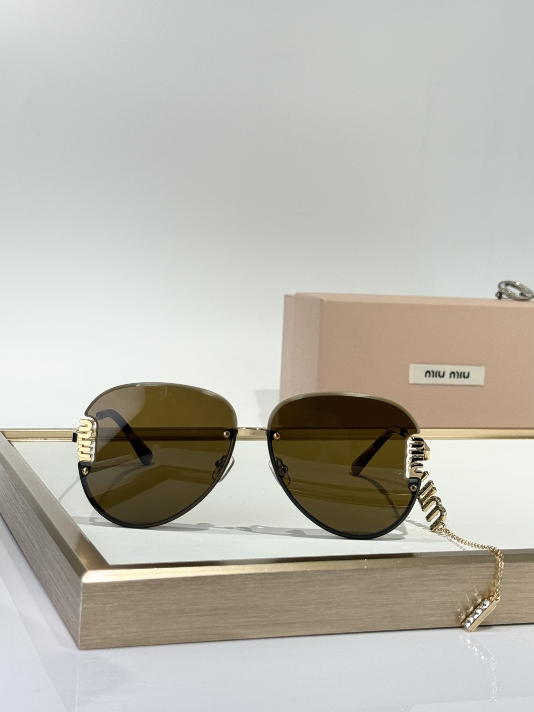 这款太阳眼镜是AAAAA 1:1 质量 (非常棒). 使用了和原版一模一样的材料. 商标部分也保持了和缪缪/Miu Miu一样. 图片拍摄是实物太阳眼镜拍摄, 您所收到的实物保证和我们图片一模一样.
