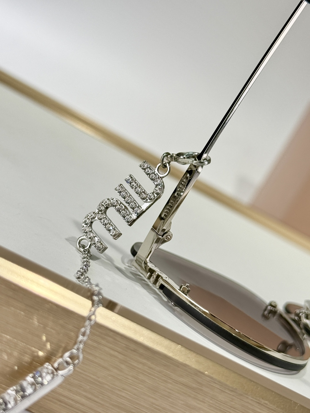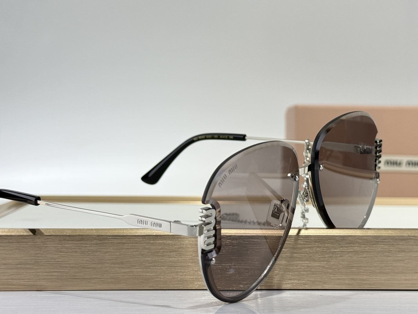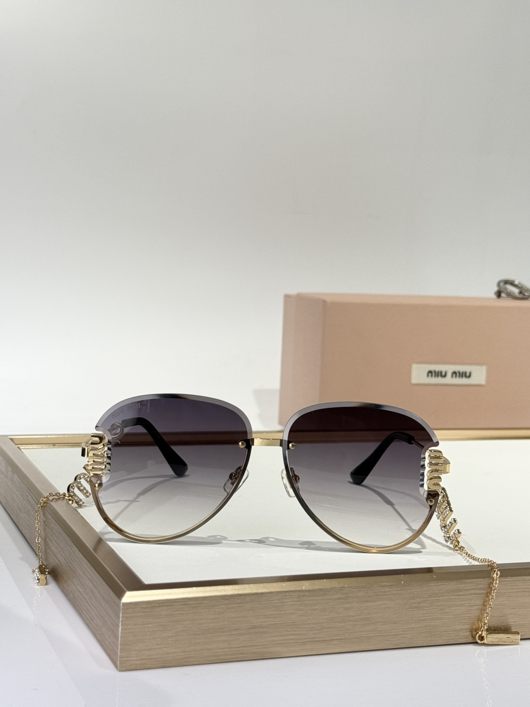 这款太阳眼镜是AAAAA 1:1 质量 (非常棒). 使用了和原版一模一样的材料. 商标部分也保持了和缪缪/Miu Miu一样. 图片拍摄是实物太阳眼镜拍摄, 您所收到的实物保证和我们图片一模一样.