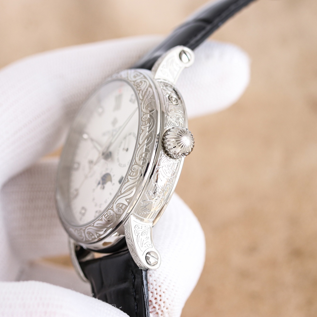 这款手表是AAAAA 1:1 质量 (非常棒). 使用了和原版一模一样的材料. 商标部分也保持了和百达翡丽/Patek Philippe一样. 图片拍摄是实物手表拍摄, 您所收到的实物保证和我们图片一模一样.