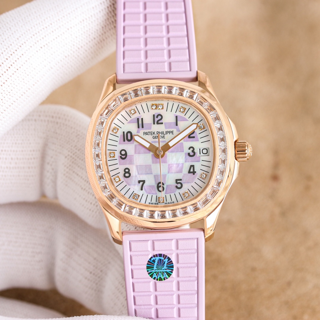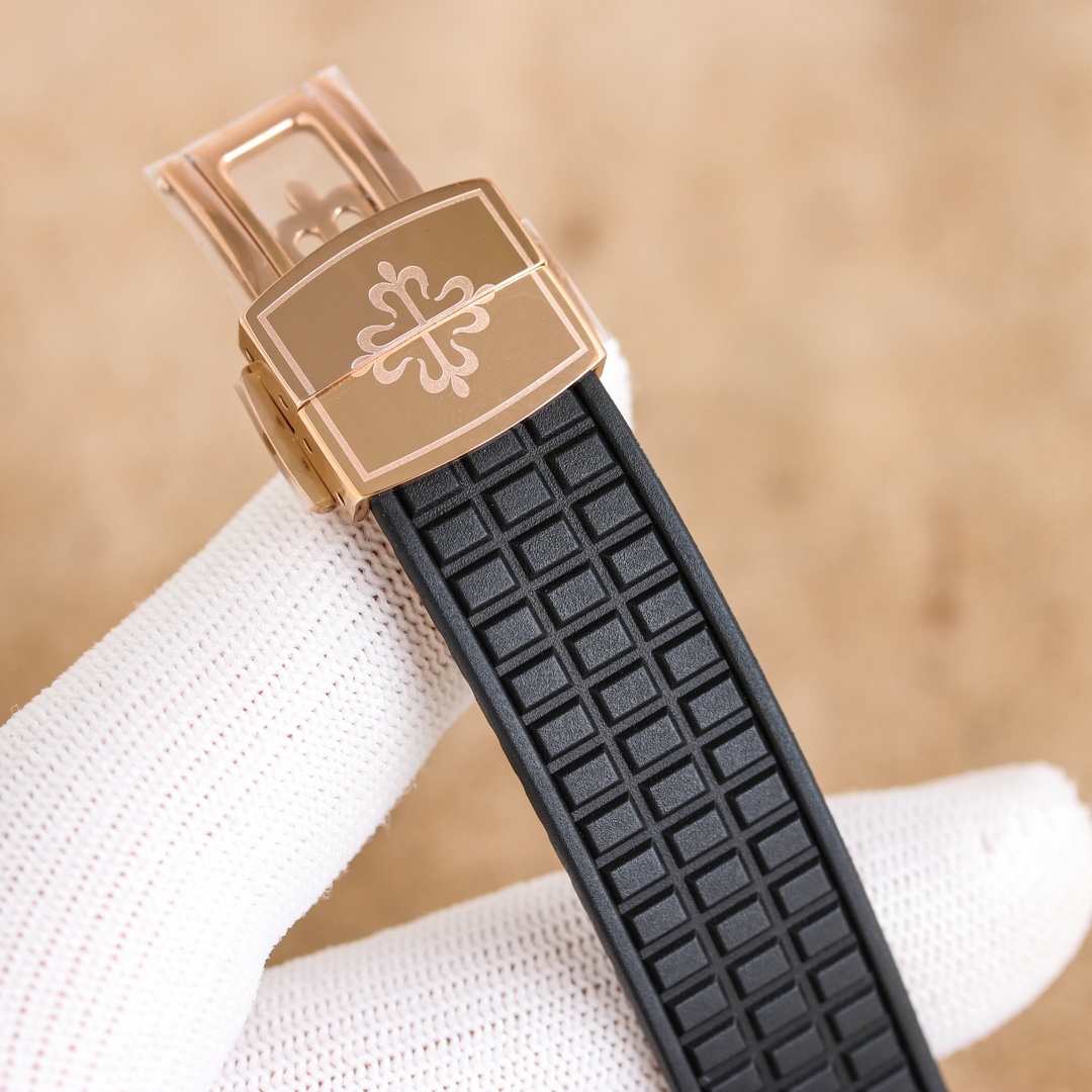 这款手表是AAAAA 1:1 质量 (非常棒). 使用了和原版一模一样的材料. 商标部分也保持了和百达翡丽/Patek Philippe一样. 图片拍摄是实物手表拍摄, 您所收到的实物保证和我们图片一模一样.