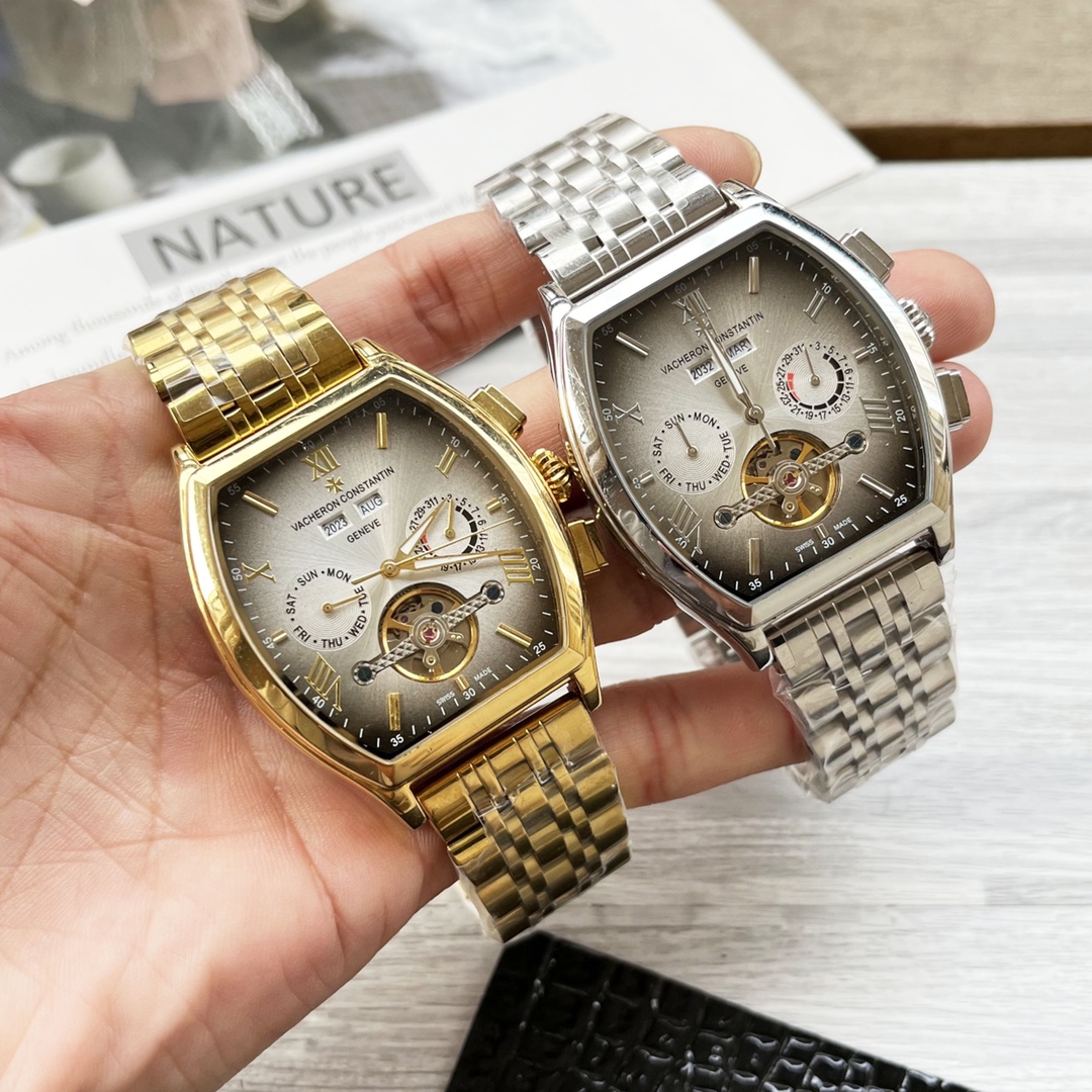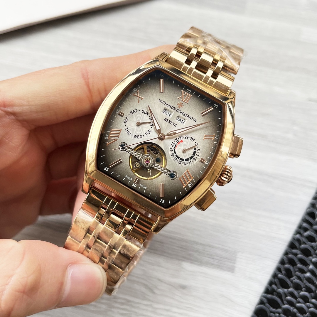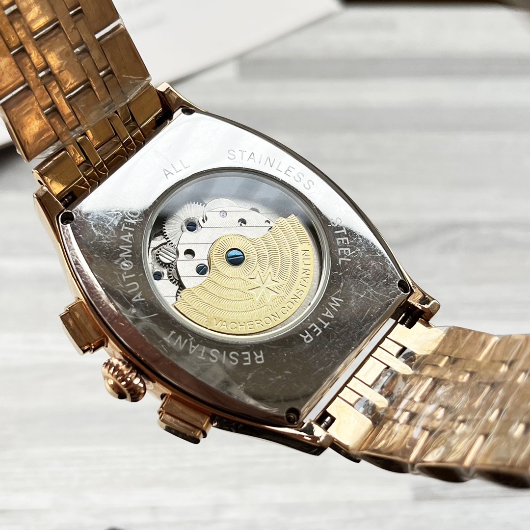 这款手表是AAAAA 1:1 质量 (非常棒). 使用了和原版一模一样的材料. 商标部分也保持了和江诗丹顿/Vacheron Constantin一样. 图片拍摄是实物手表拍摄, 您所收到的实物保证和我们图片一模一样.