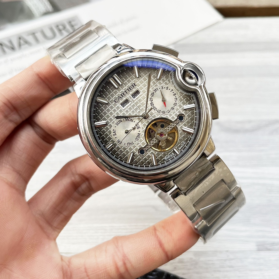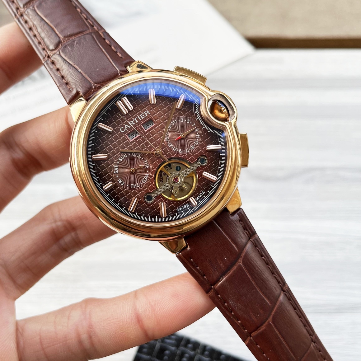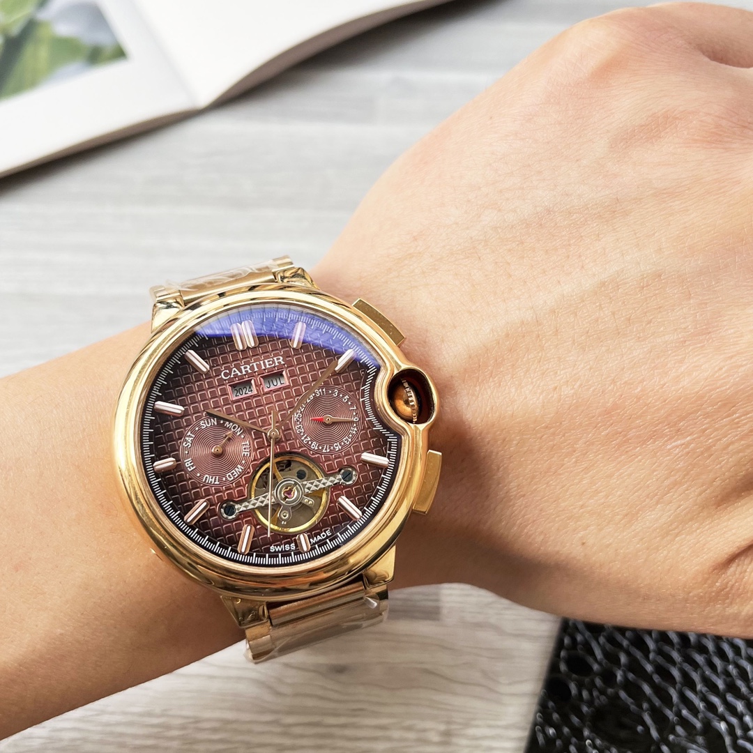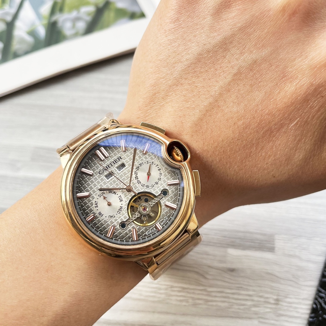 这款手表是AAAAA 1:1 质量 (非常棒). 使用了和原版一模一样的材料. 商标部分也保持了和卡地亚/Cartier一样. 图片拍摄是实物手表拍摄, 您所收到的实物保证和我们图片一模一样.
