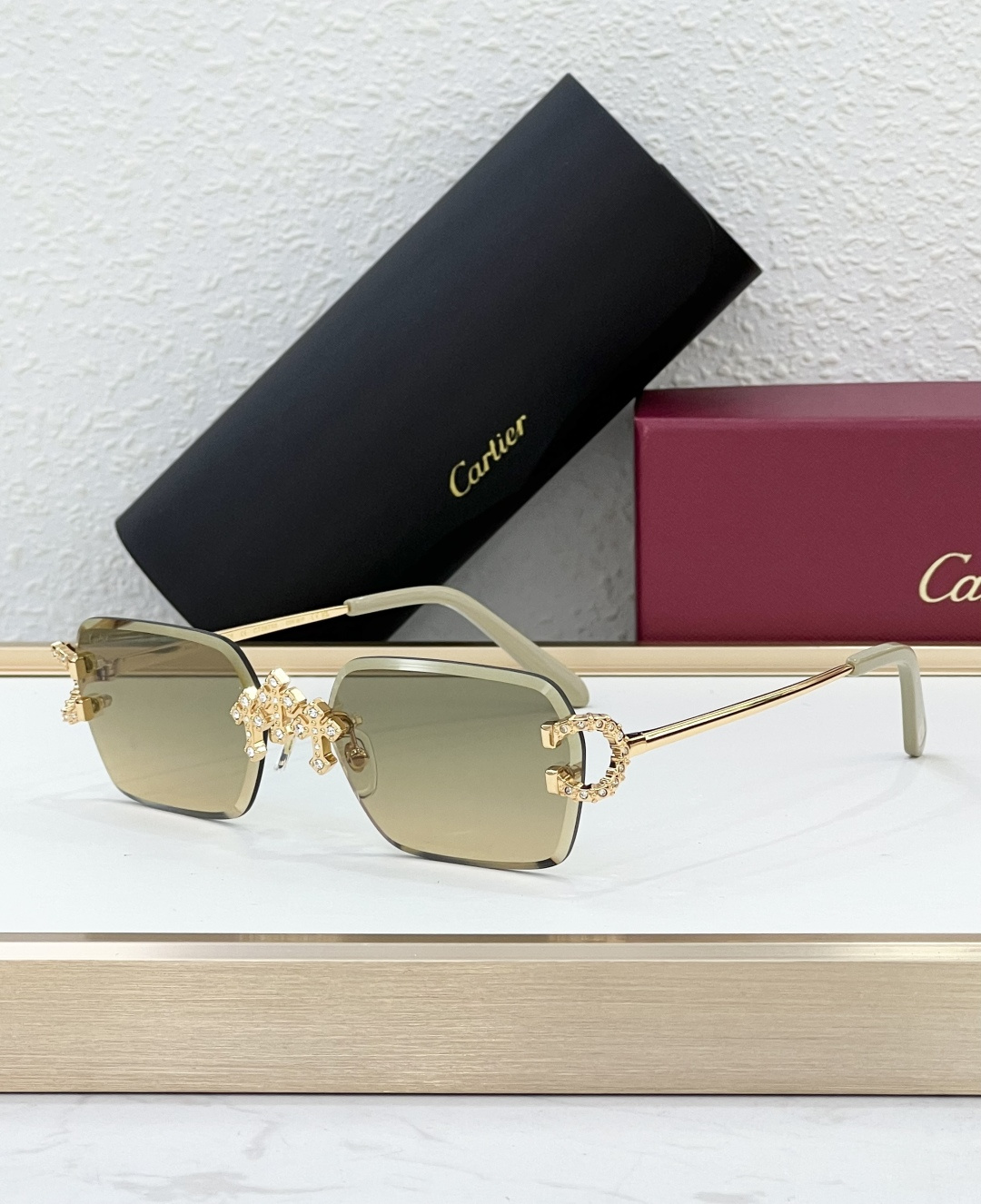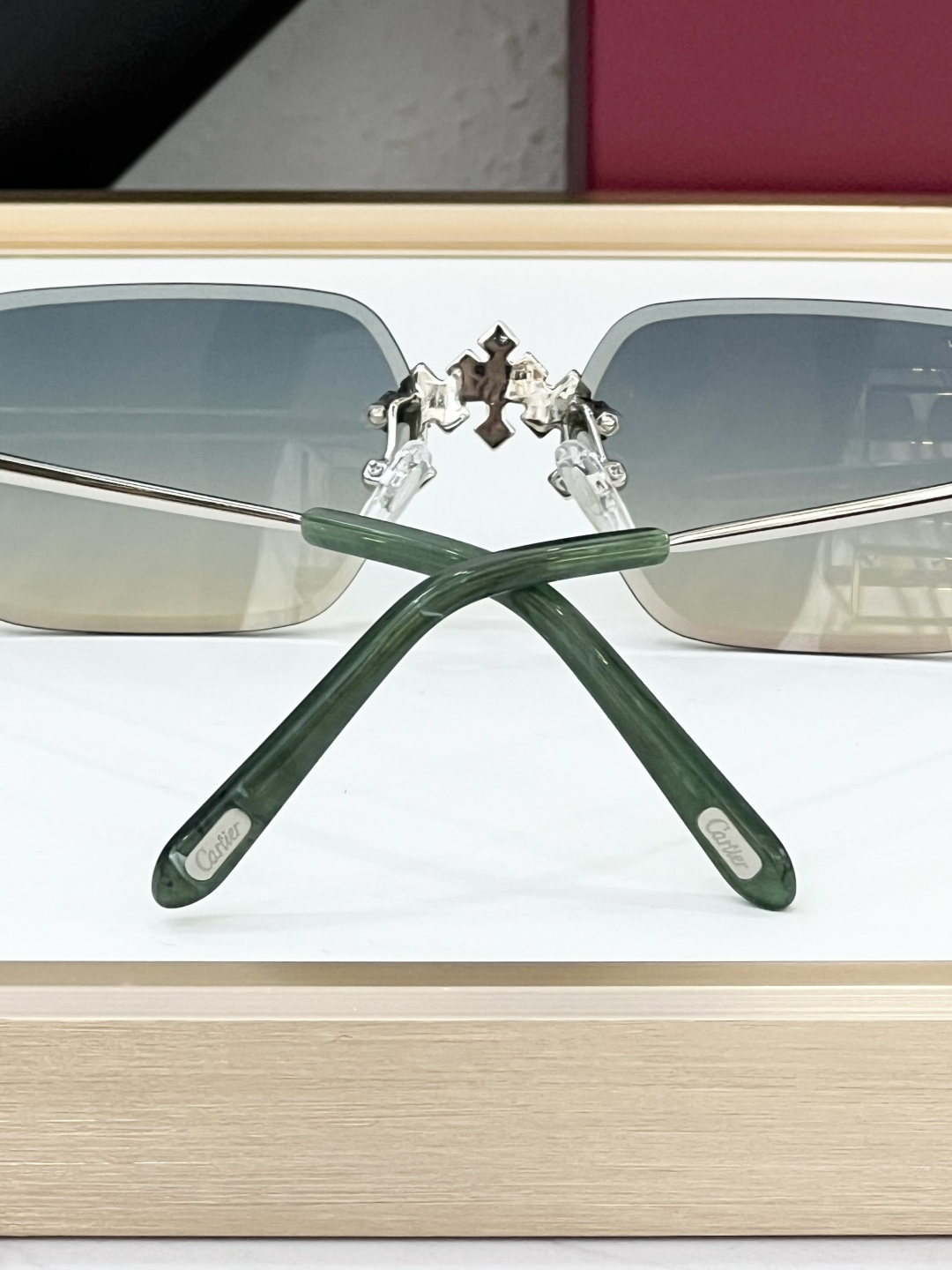 这款太阳眼镜是AAAAA 1:1 质量 (非常棒). 使用了和原版一模一样的材料. 商标部分也保持了和卡地亚/Cartier一样. 图片拍摄是实物太阳眼镜拍摄, 您所收到的实物保证和我们图片一模一样.