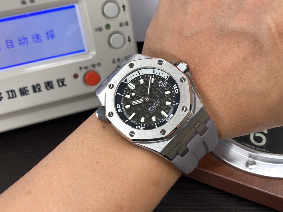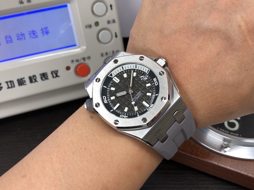 这款手表是AAAAA 1:1 质量 (非常棒). 使用了和原版一模一样的材料. 商标部分也保持了和爱彼/Audemars Piguet一样. 图片拍摄是实物手表拍摄, 您所收到的实物保证和我们图片一模一样.